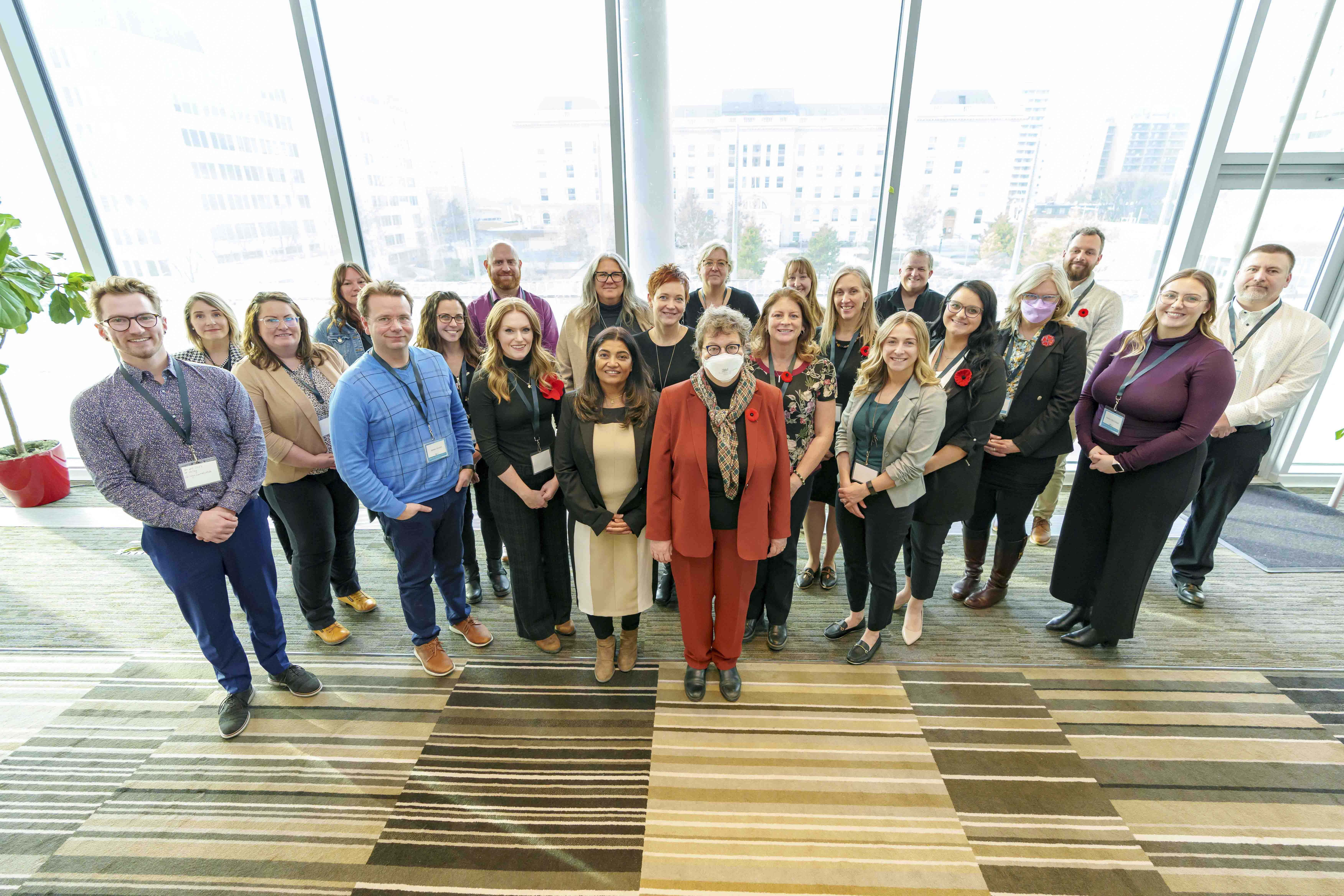 Sunday, November 5, 2023 – Senator Paula Simons, centre; meeting organized by SENgage with teachers participating in the Alberta Teachers Institute on Parliamentary Democracy program; Edmonton, Alberta.