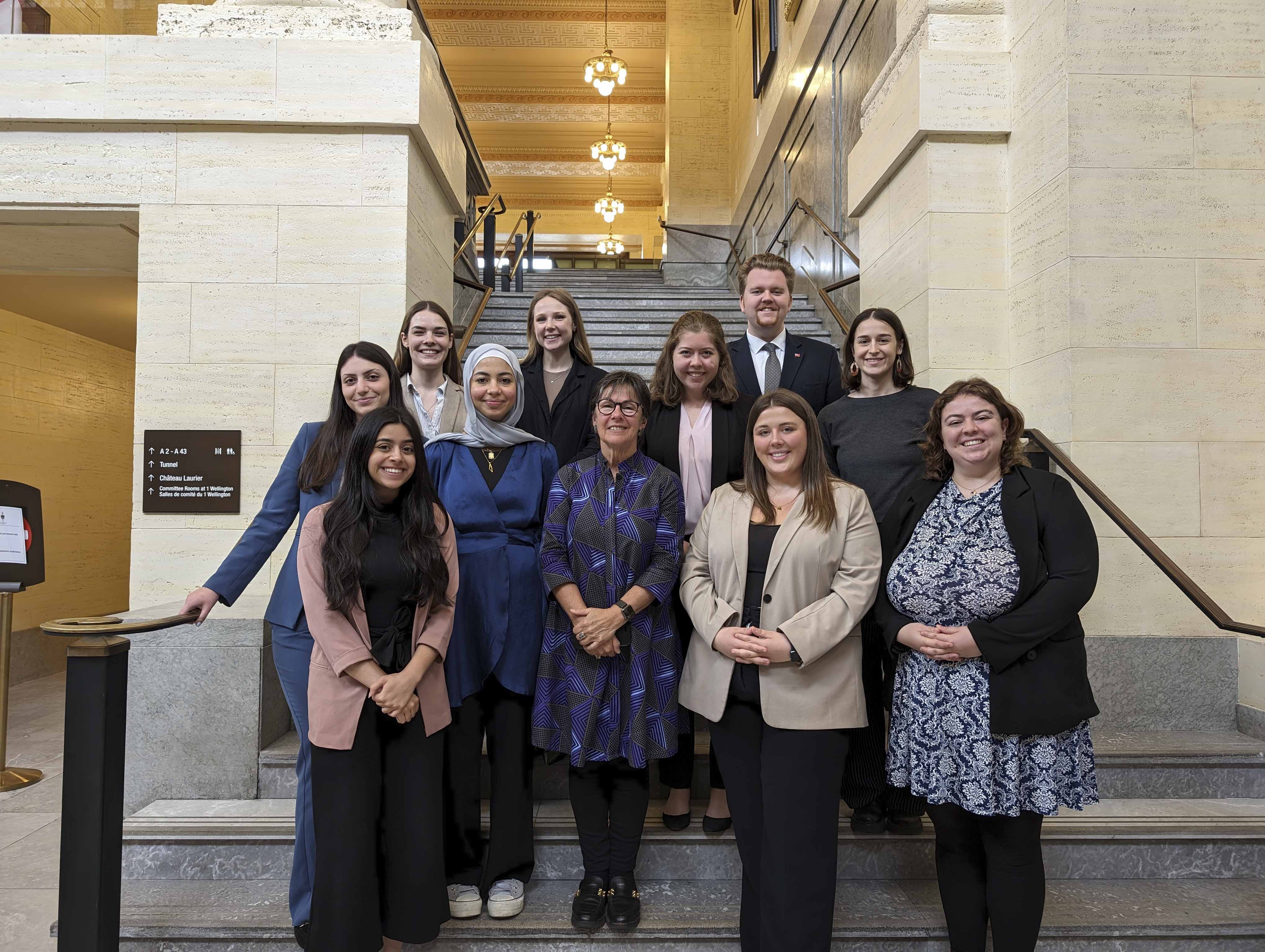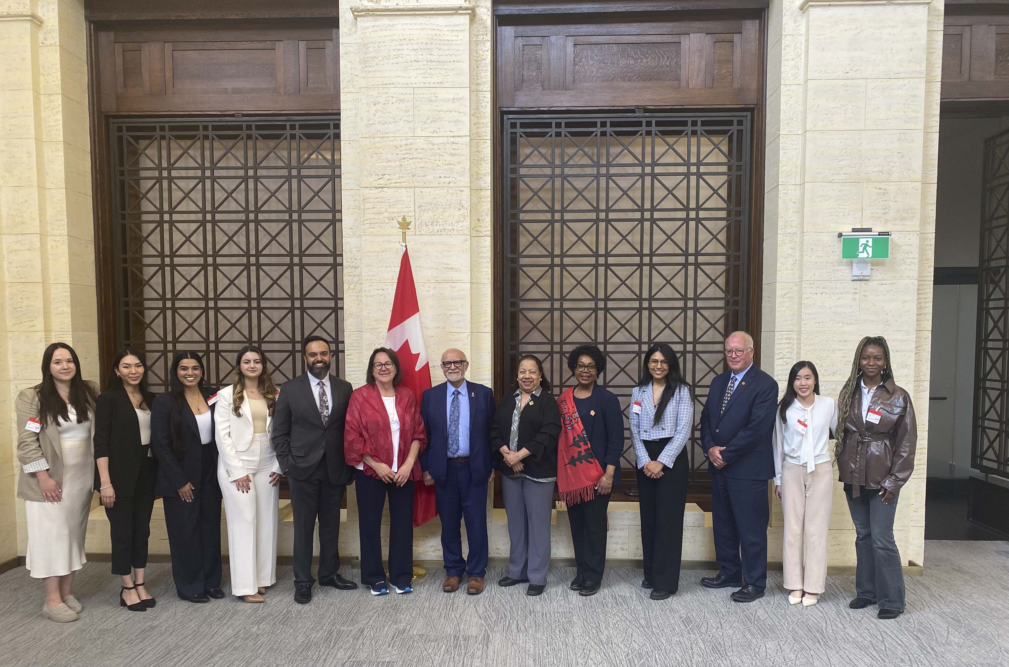 Monday, June 10, 2024 – Senator Kim Pate, centre, and interns from the Ontario Legislature Internship Programme (OLIP); Senate of Canada Building, Ottawa, Ontario.