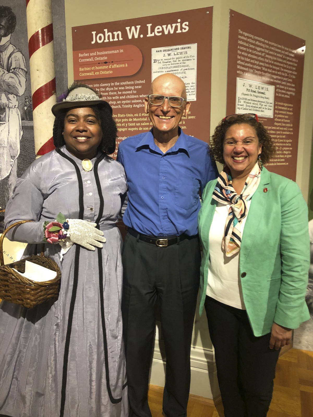 Saturday, May 25, 2024 – Senator Bernadette Clement, right, Keisha Cuffie, a Black history educator and graduate student at Carleton University, and Paul LaRue, a descendant of the Lewis family whose roots are in Upper Canada; official opening of the Black History Exhibit at Upper Canada Village; Morrisburg, Ontario.