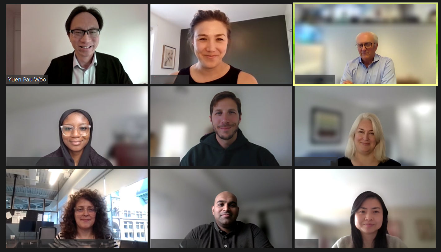 Wednesday, June 12, 2024 – Senator Yuen Pau Woo, top left; virtual event, organized by SENgage, with interns and staff from the Ontario Brain Institute, Toronto, Ontario.