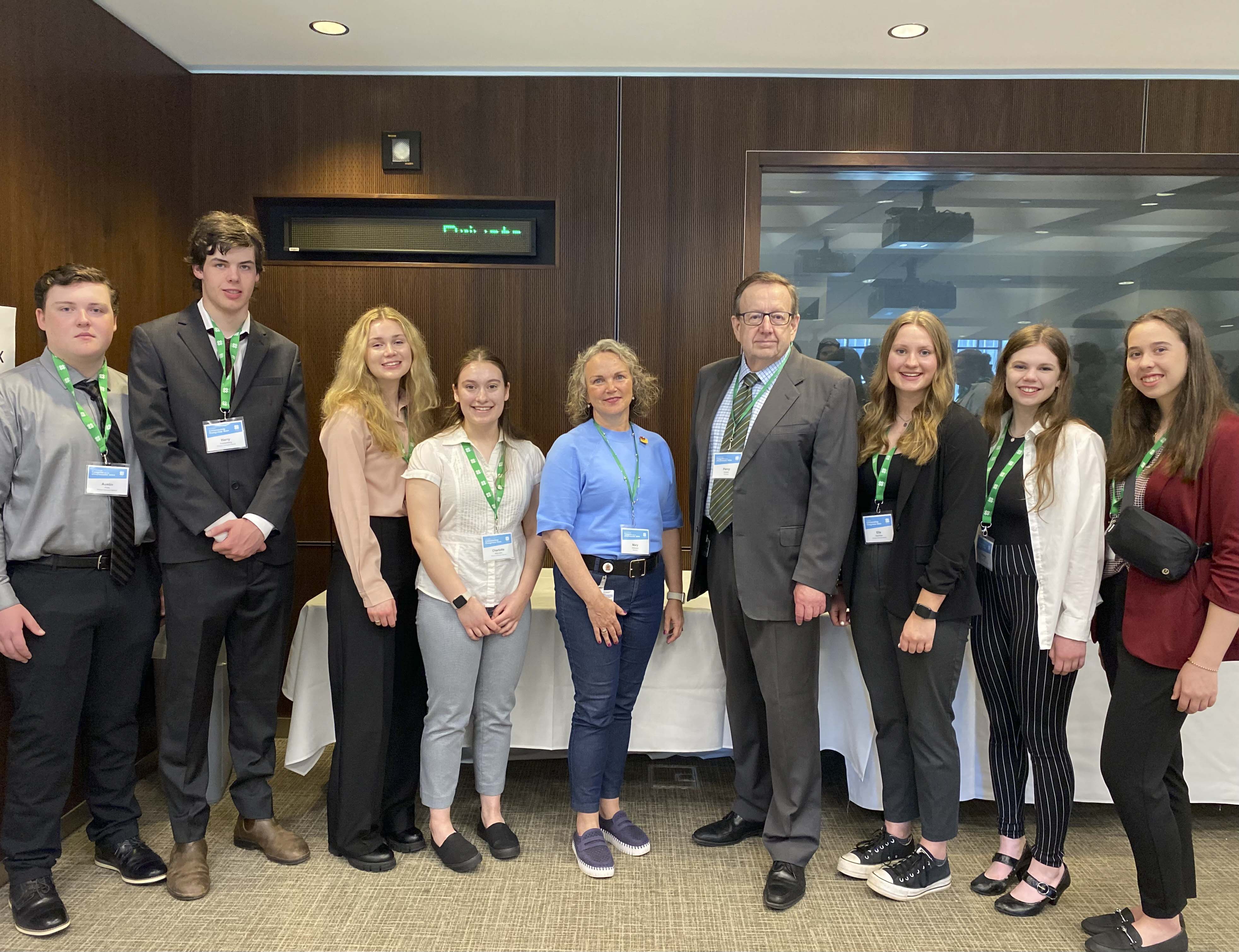 Thursday, May 23, 2024 – Senator Mary Robinson, centre Senator Percy E. Downe, fourth from right, and Prince Edward Island participants in the 4-H Canada Citizenship Congress; 4-H Canada Parliamentary Reception; Parliament Hill, Ottawa, Ontario.