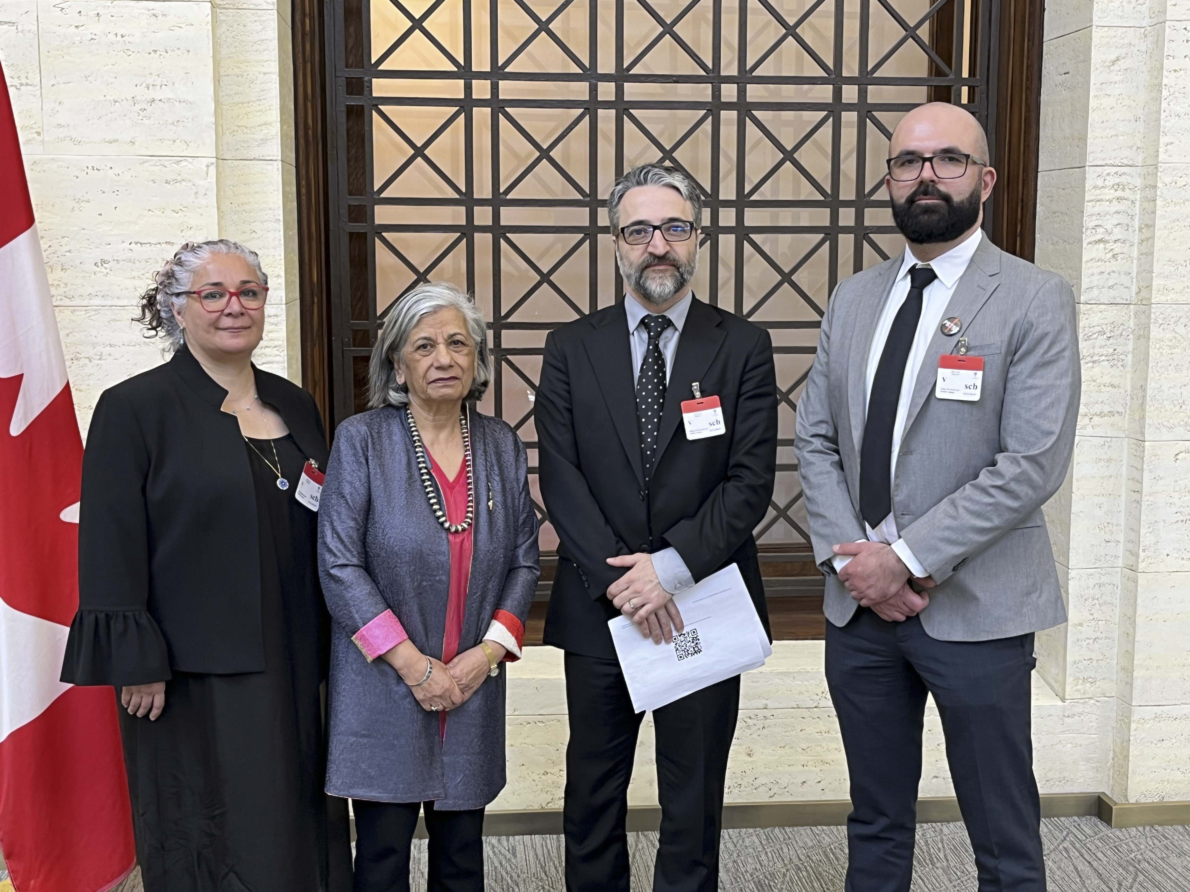 Tuesday, May 7, 2024 – Senator Ratna Omidvar, second from left, Mehrdokht Hadi, Hamed Esmaeilion and Nima Neyestani; meeting with the Iranian Justice Collective; Senate of Canada Building, Ottawa, Ontario.