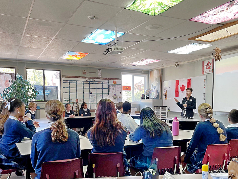 Thursday, May 8, 2025 – Senator Bev Busson; school visit coordinated by SENgage; Holy Cross Middle School, Penticton, British Columbia.