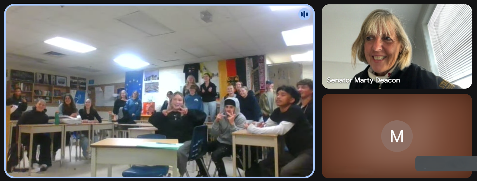 Wednesday, April 30, 2025 – Senator Marty Deacon, virtual event organized by SENgage, with students from Innisdale Secondary School, Barrie, Ontario.