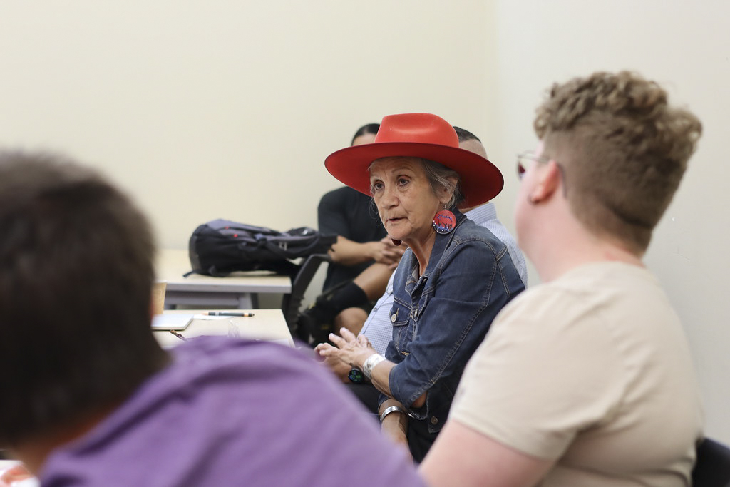 Friday, July 25, 2025, Senator Mary Jane McCallum, with students; visit coordinated by SENgage; University of Winnipeg, Winnipeg, Manitoba.Photo credit: Jordan Ross / University of Winnipeg