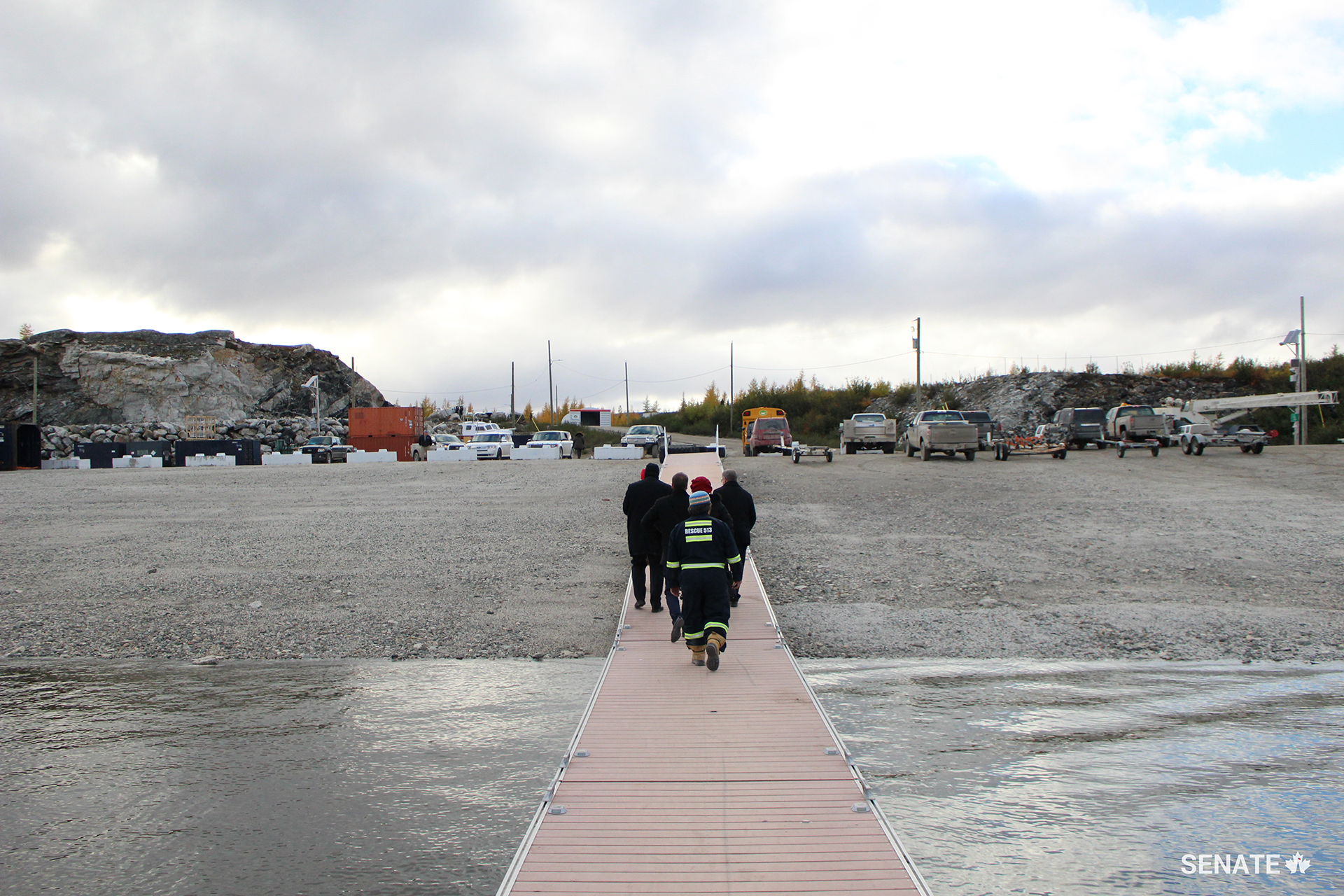 Senators return to dry land after a blustery trip on Kuujjuaq’s fast rescue craft. The committee expects to release its report on maritime search and rescue operations in Canada later in 2018.