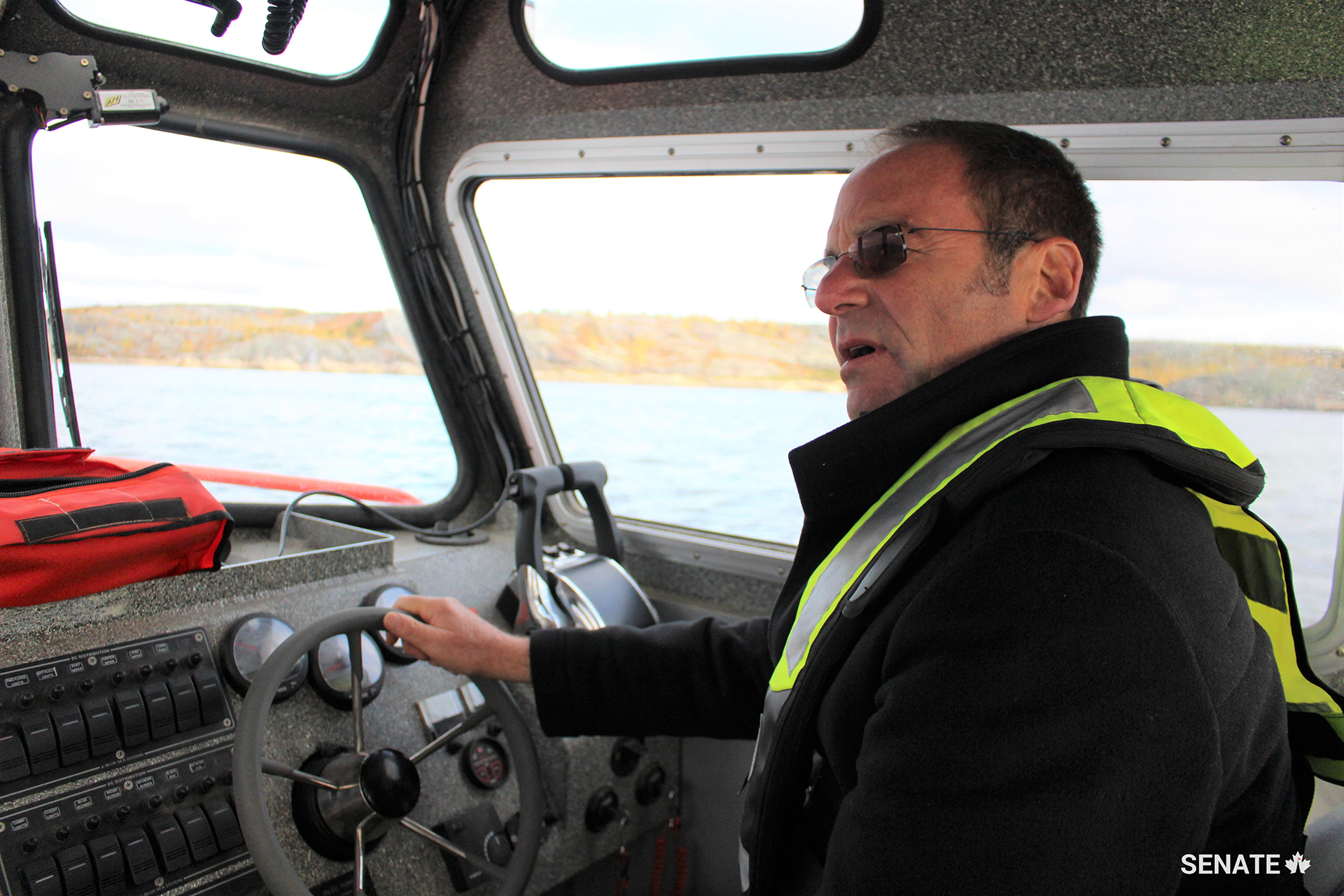 Senator Gold takes the wheel of Kuujjuaq’s fast rescue craft.