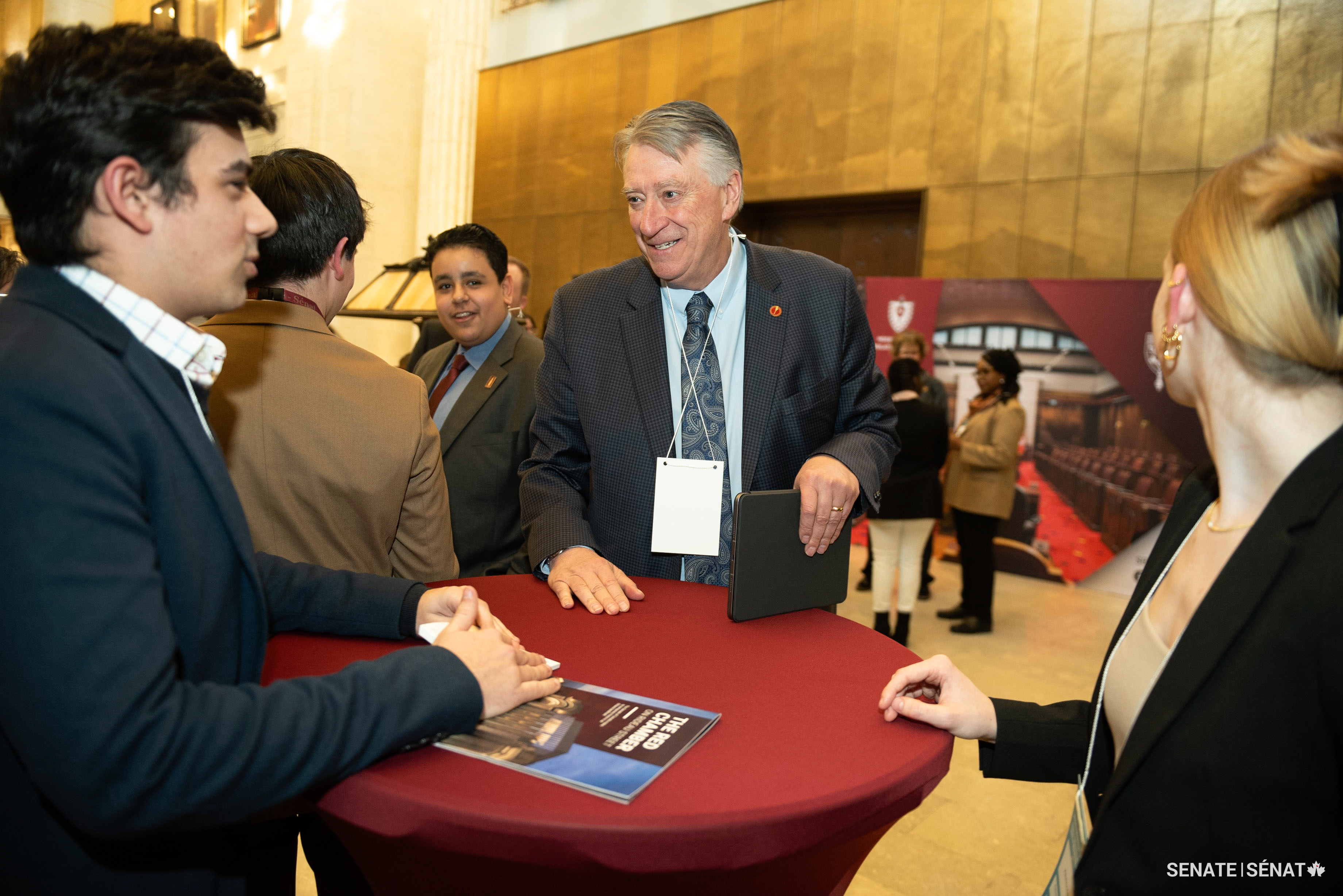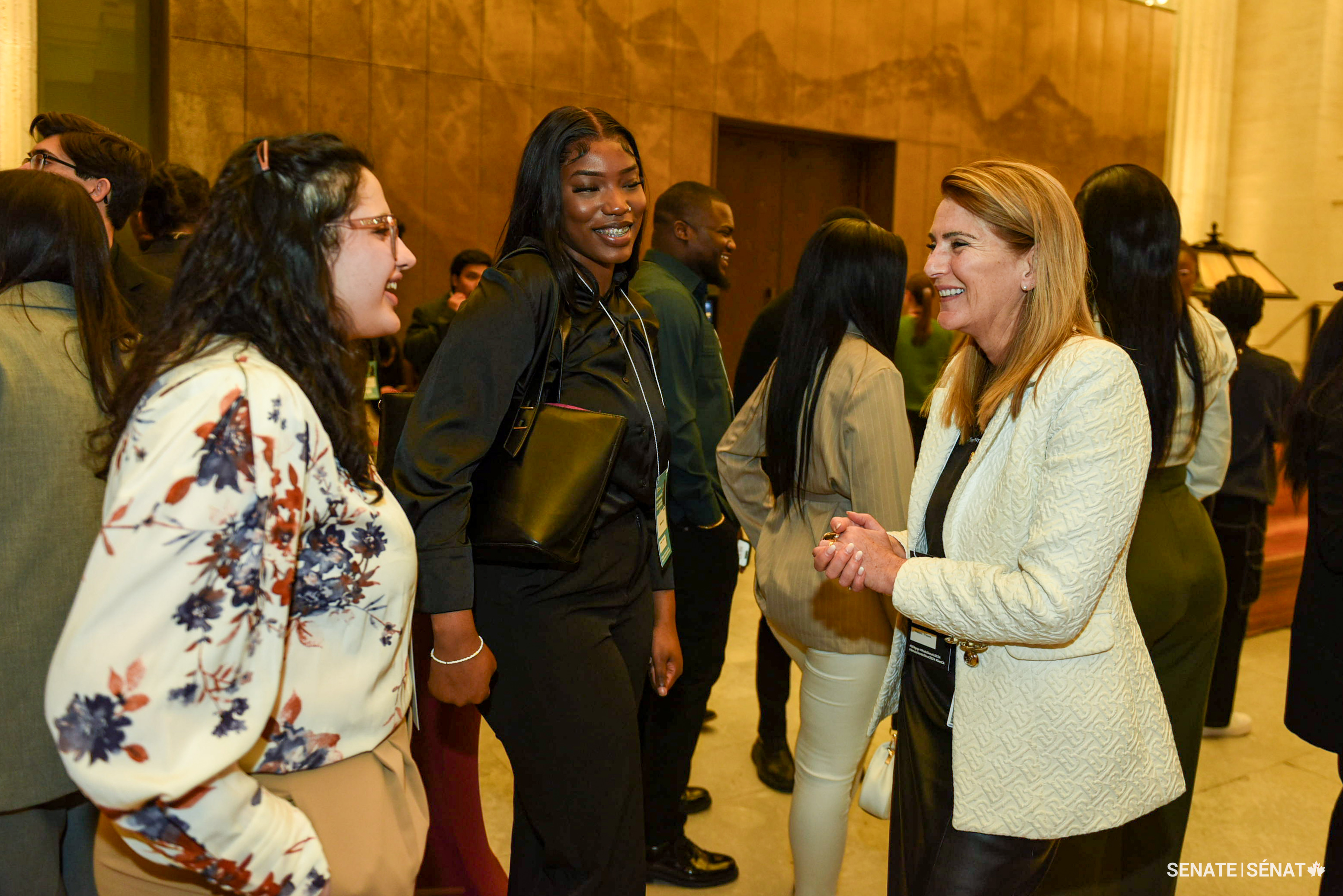As host of the networking soirée, Speaker of the Senate Raymonde Gagné welcomed participants to the Senate of Canada Building. She saluted model senators for their passion and offered words of advice and encouragement for their upcoming deliberations.