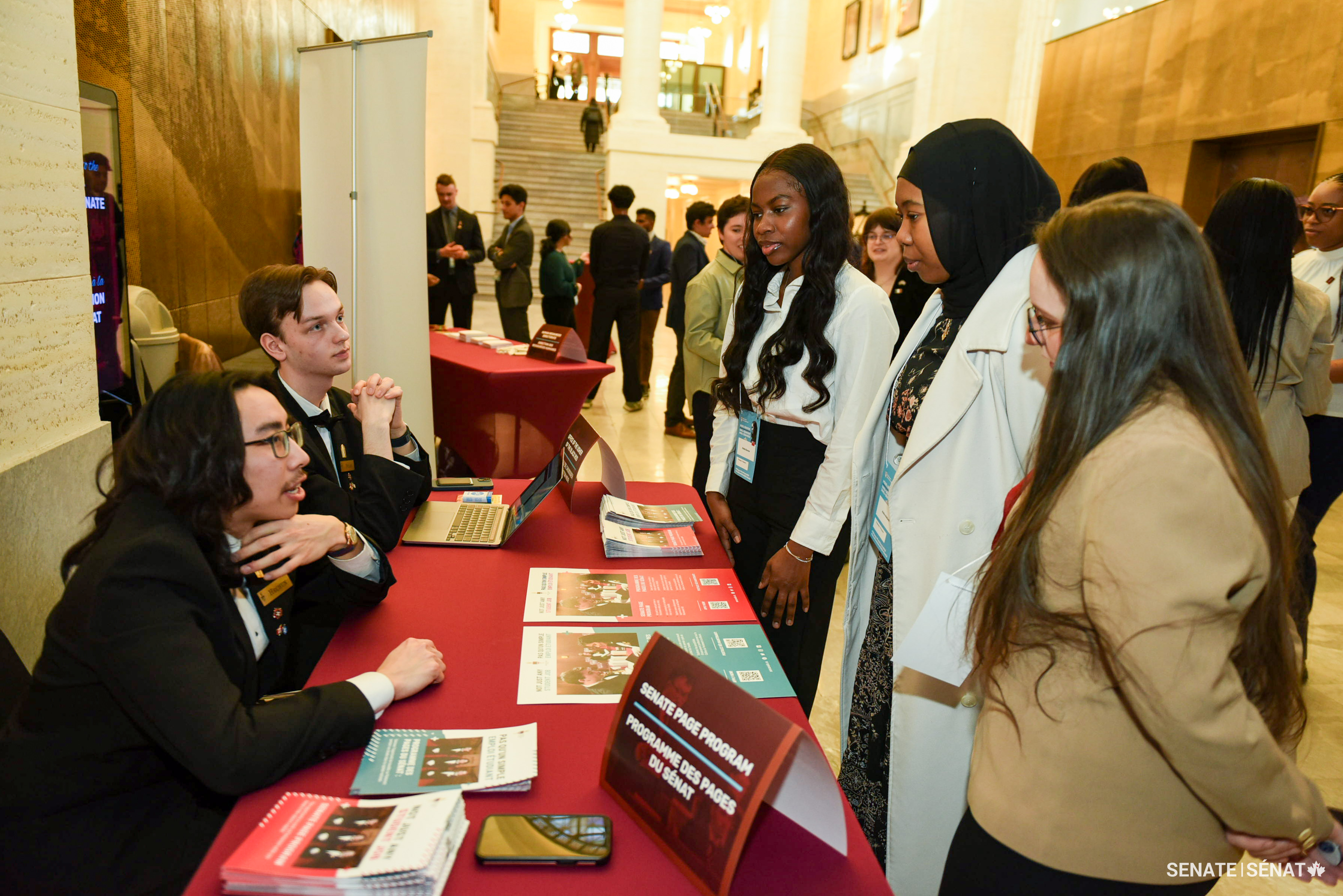 Senate pages, left, discuss their program and other job opportunities for young people at the Upper Chamber.