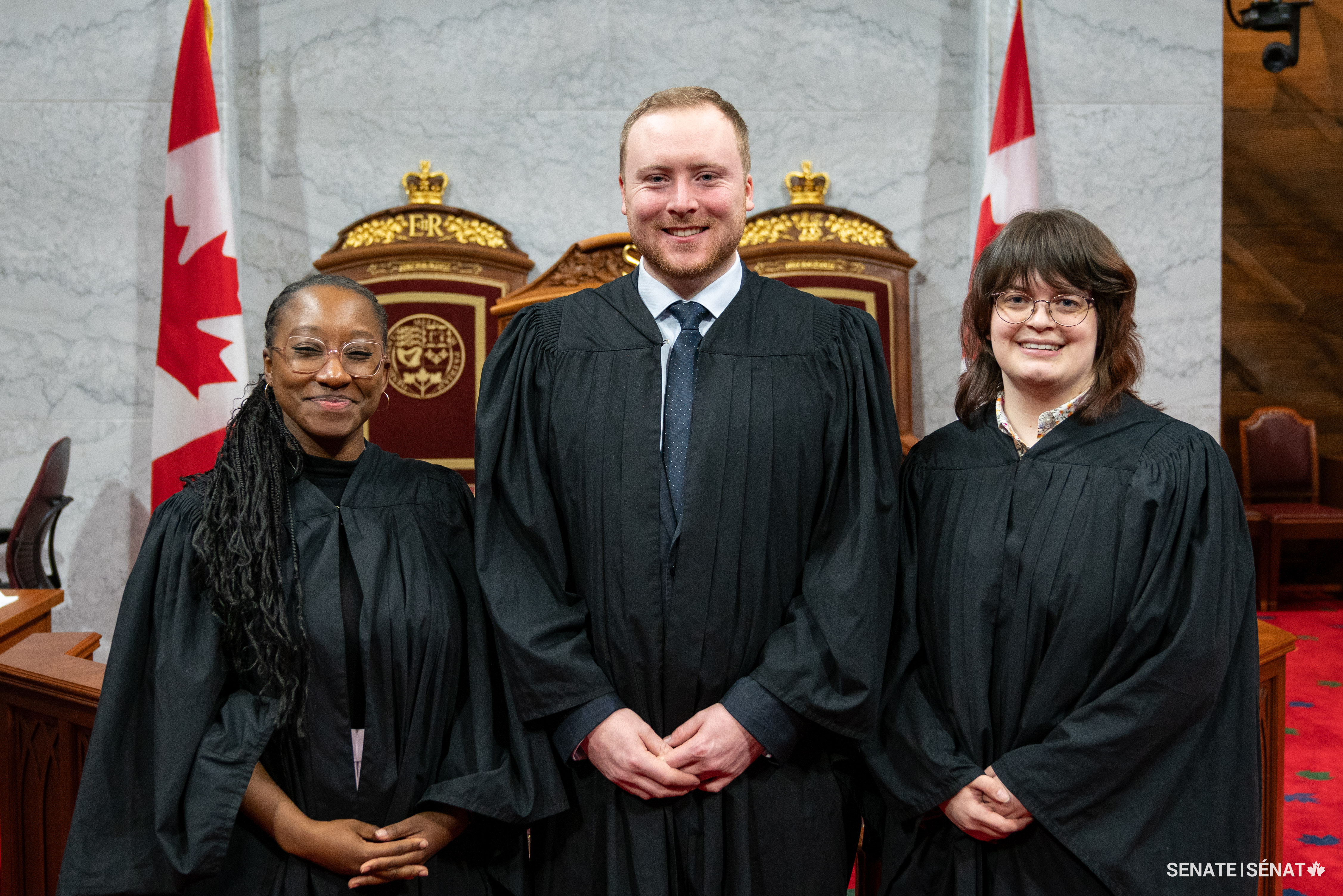 From left, Sarah Mazhero, Cole Walsh and Marianne Arseneau shared the role of model Speaker of the Senate.