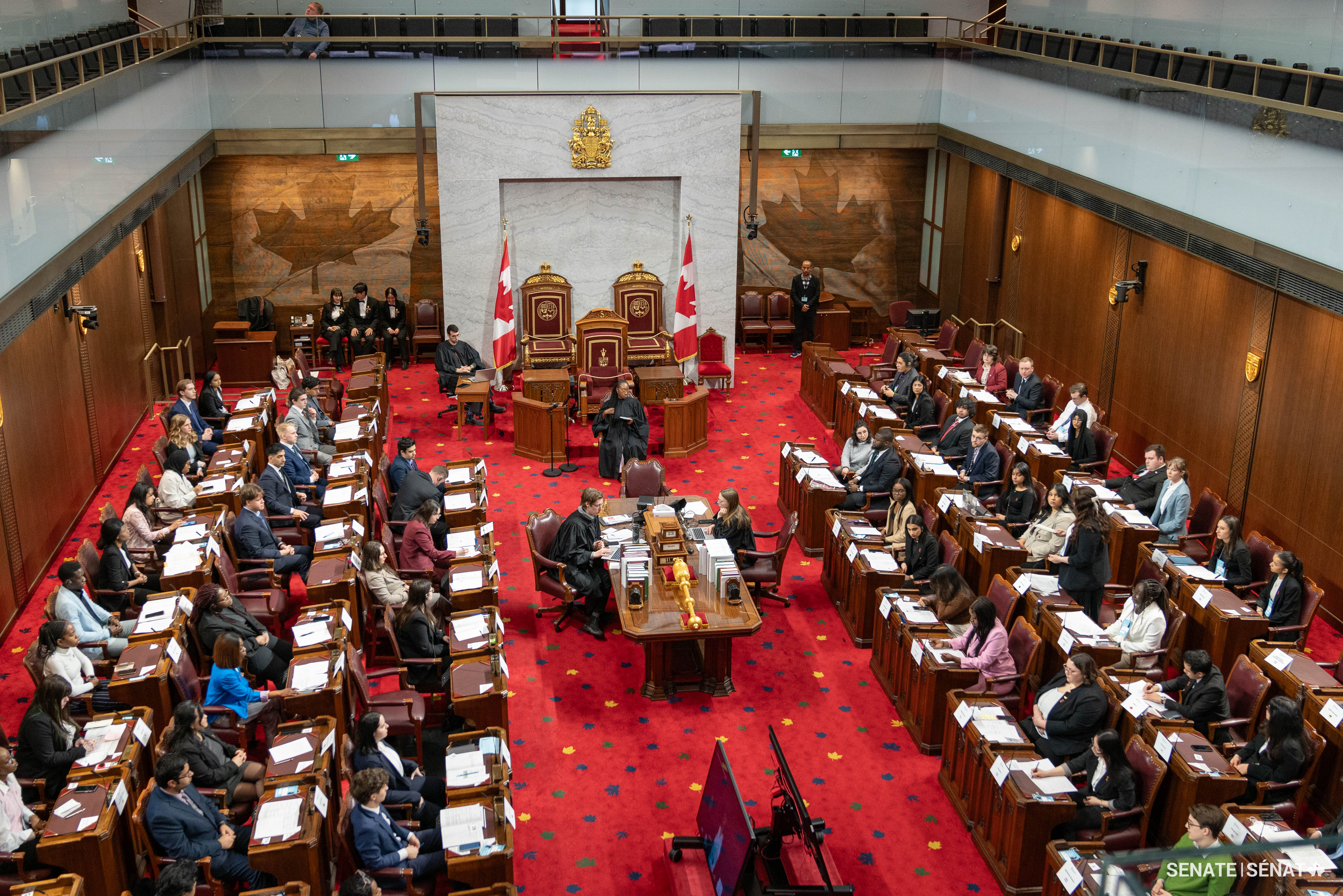 Model Senate reached new heights in 2024, after approximately 100 post-secondary students representing 10 provinces and one territory — a new record — filled the seats in Canada’s Upper Chamber.