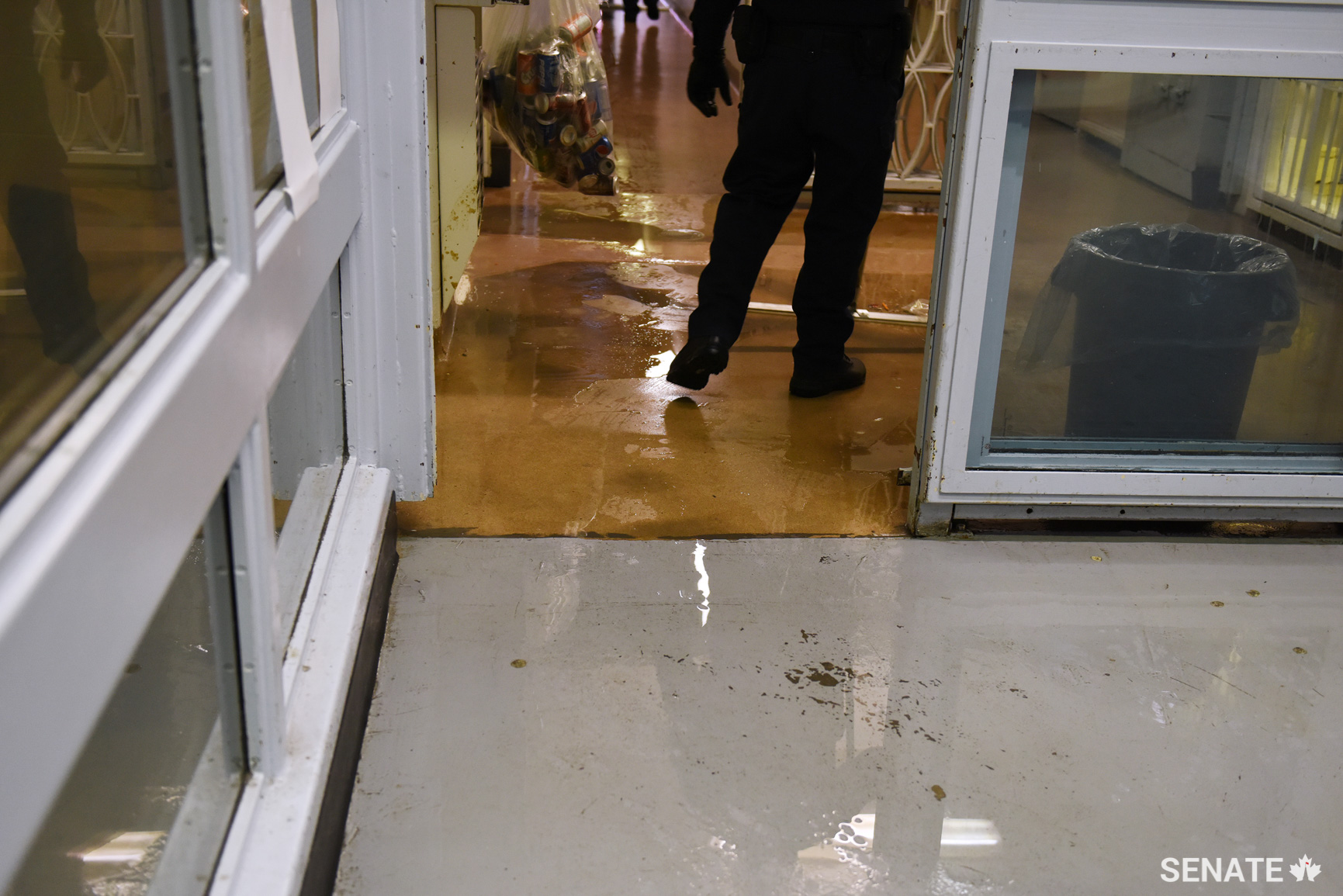 A correctional worker cleans up flooding caused by a broken sprinkler head in a prisoner’s segregation cell. Prisoners sometimes resort to vandalism to protest conditions that they consider unfair.