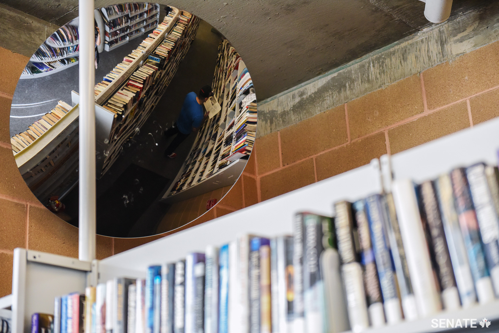 A prisoner browses in the Stony Mountain library.