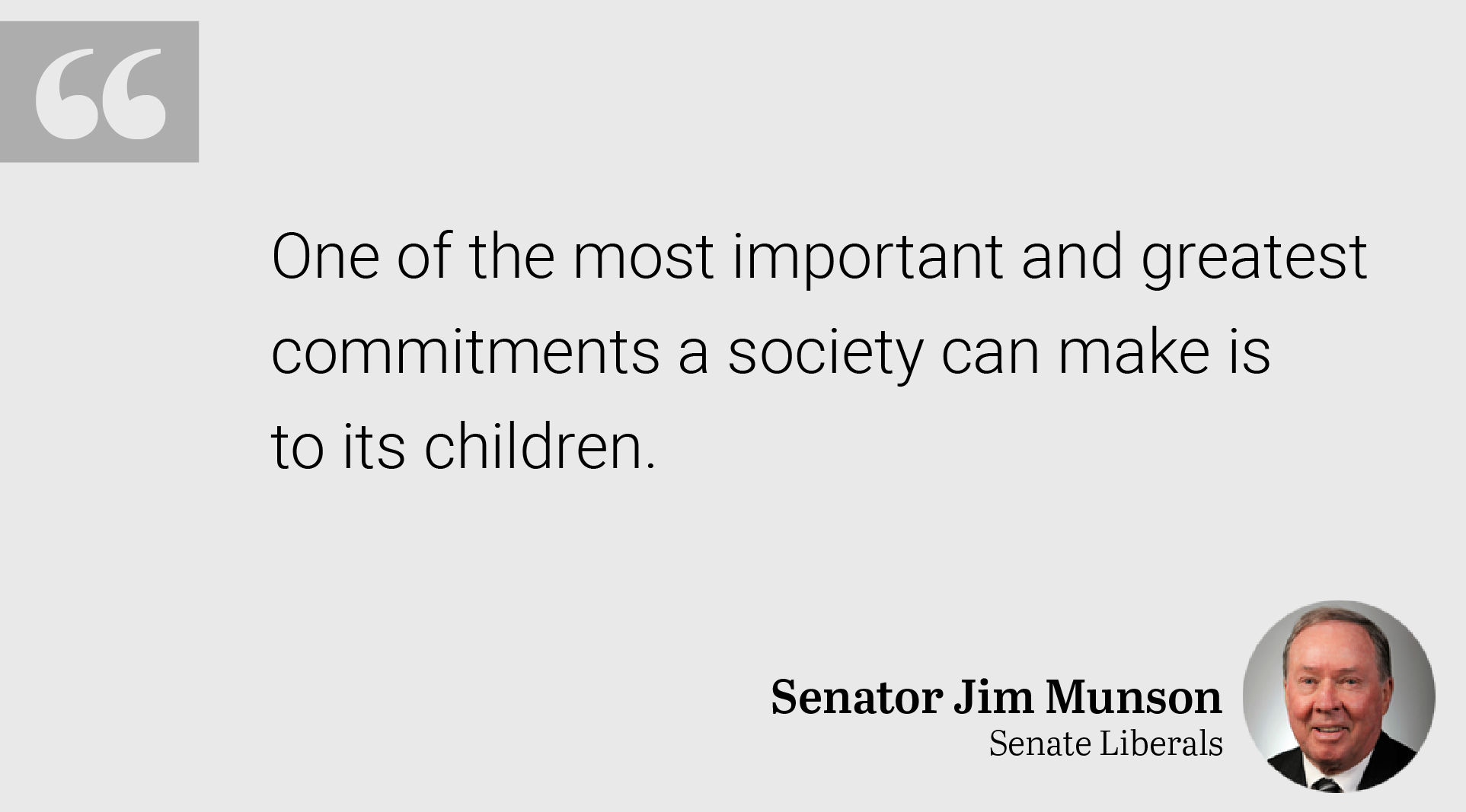 One of the most important and greatest commitments a society can make is to its children. There is a saying: You can seek the wisdom of the ages, but always look at the world through the eyes of a child.