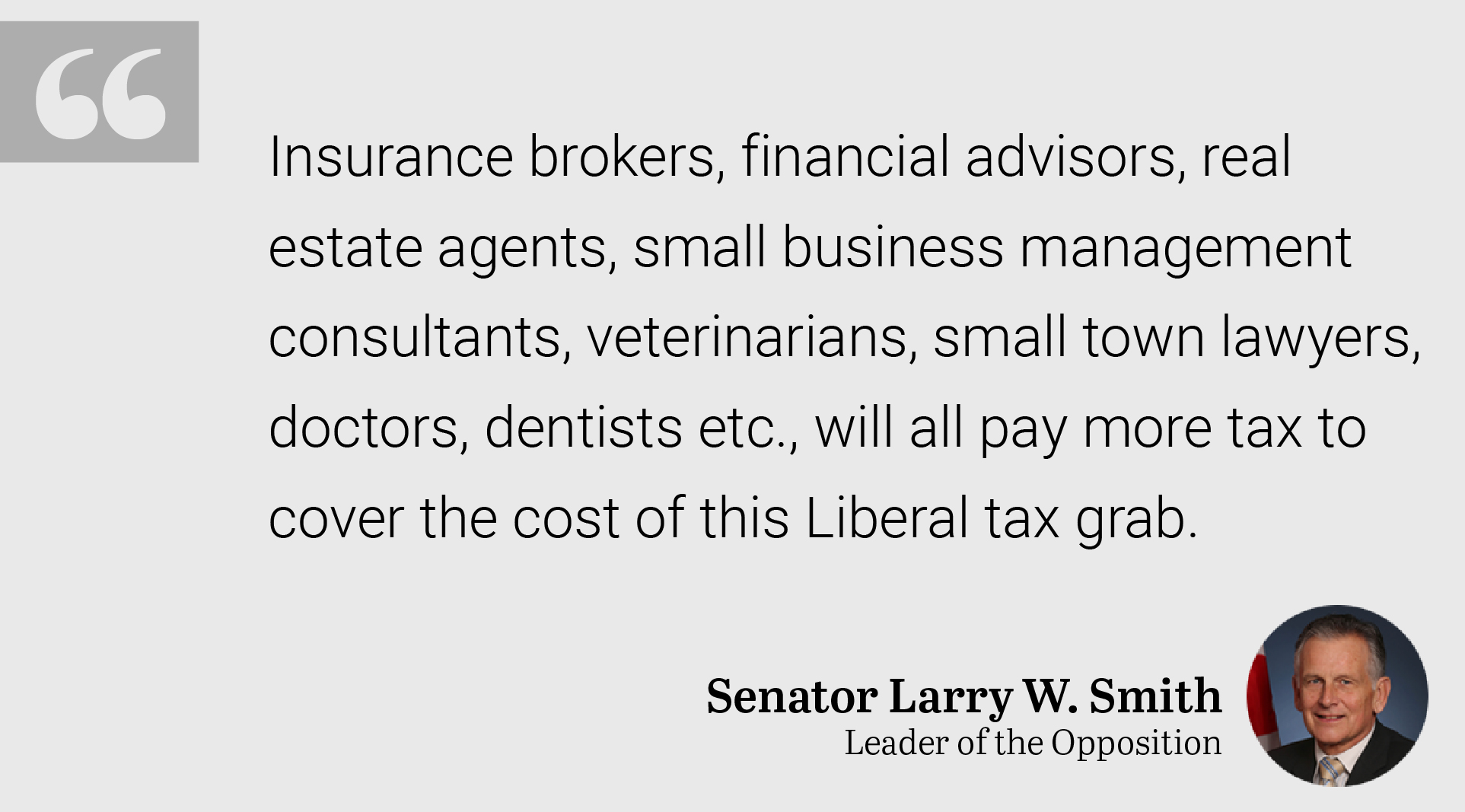 Insurance brokers, financial advisors, real estate agents, small business management consultants, veterinarians, small town lawyers, doctors, dentists etc., will all pay more tax to cover the cost of this Liberal tax grab.
