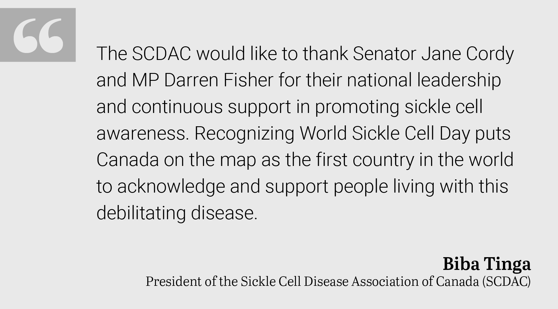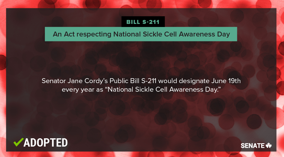 This bill sets out to follow the lead of the United Nations and establish June 19 of each year as National Sickle Cell Awareness Day in Canada.