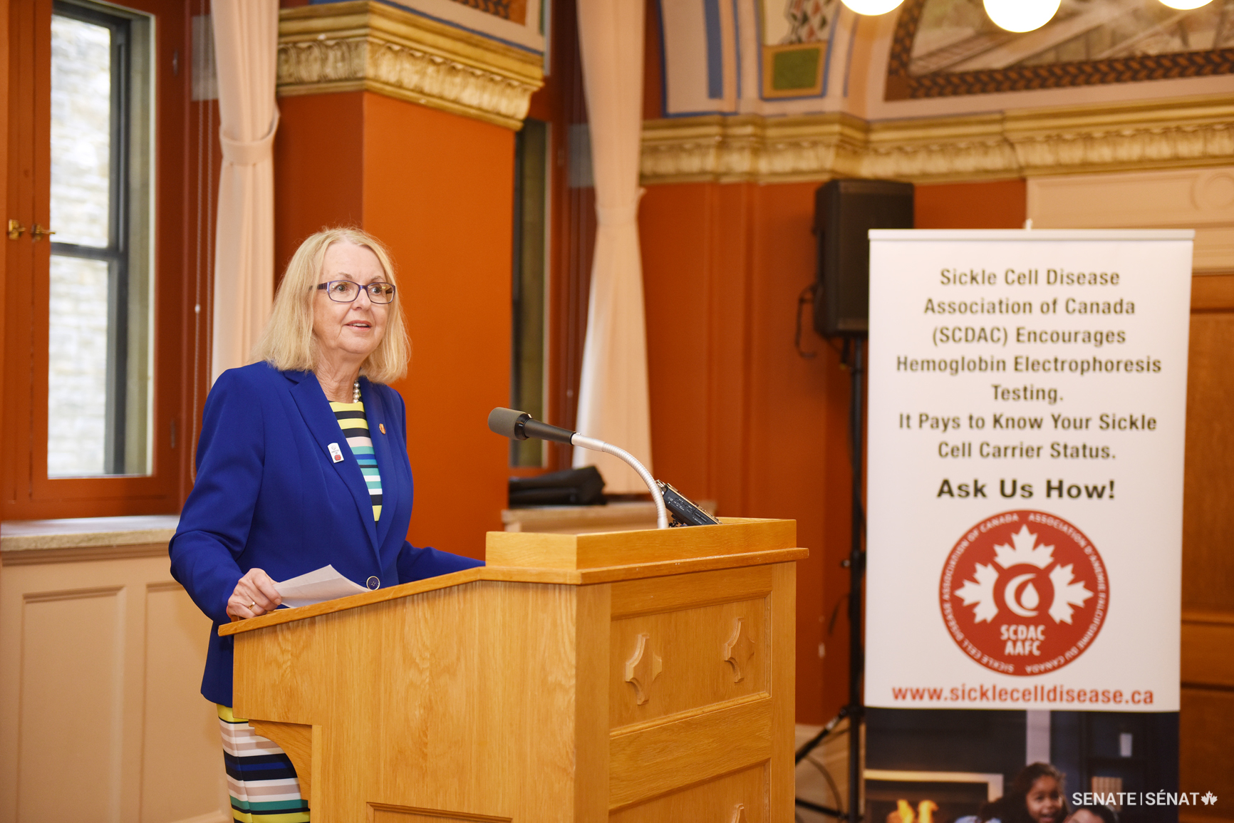 Among her accomplishments in the Red Chamber, Senator Cordy helped designate June 19 as National Sickle Cell Awareness Day. She’s pictured here marking the first annual event on Parliament Hill in 2018.