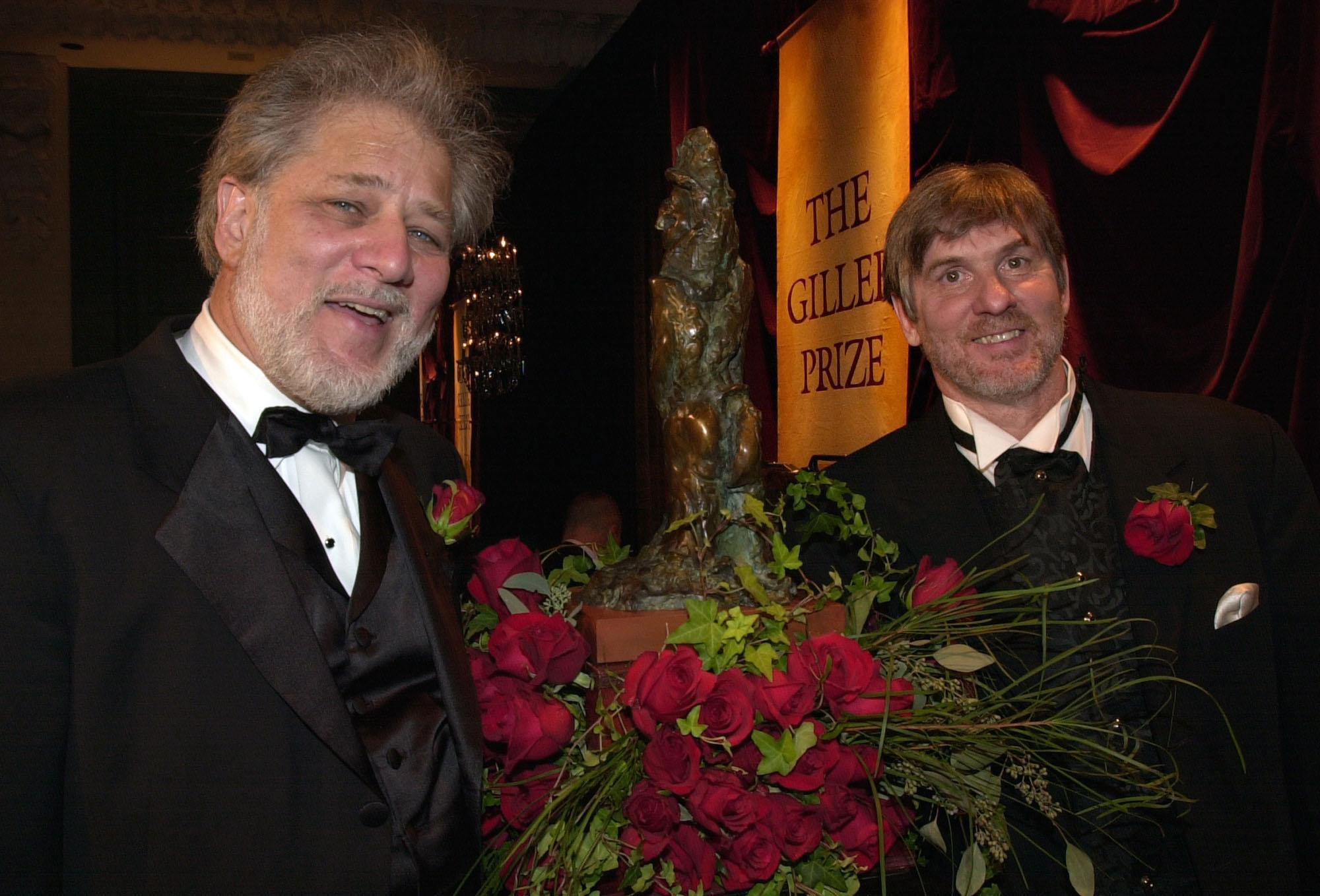 Senator Richards, right, shares the 2000 Giller Prize with author Michael Ondaatje. Ondaatje won for his novel Anil's Ghost, and Senator Richards for his novel, Mercy Among the Children. (CP PHOTO/Tannis Toohey)