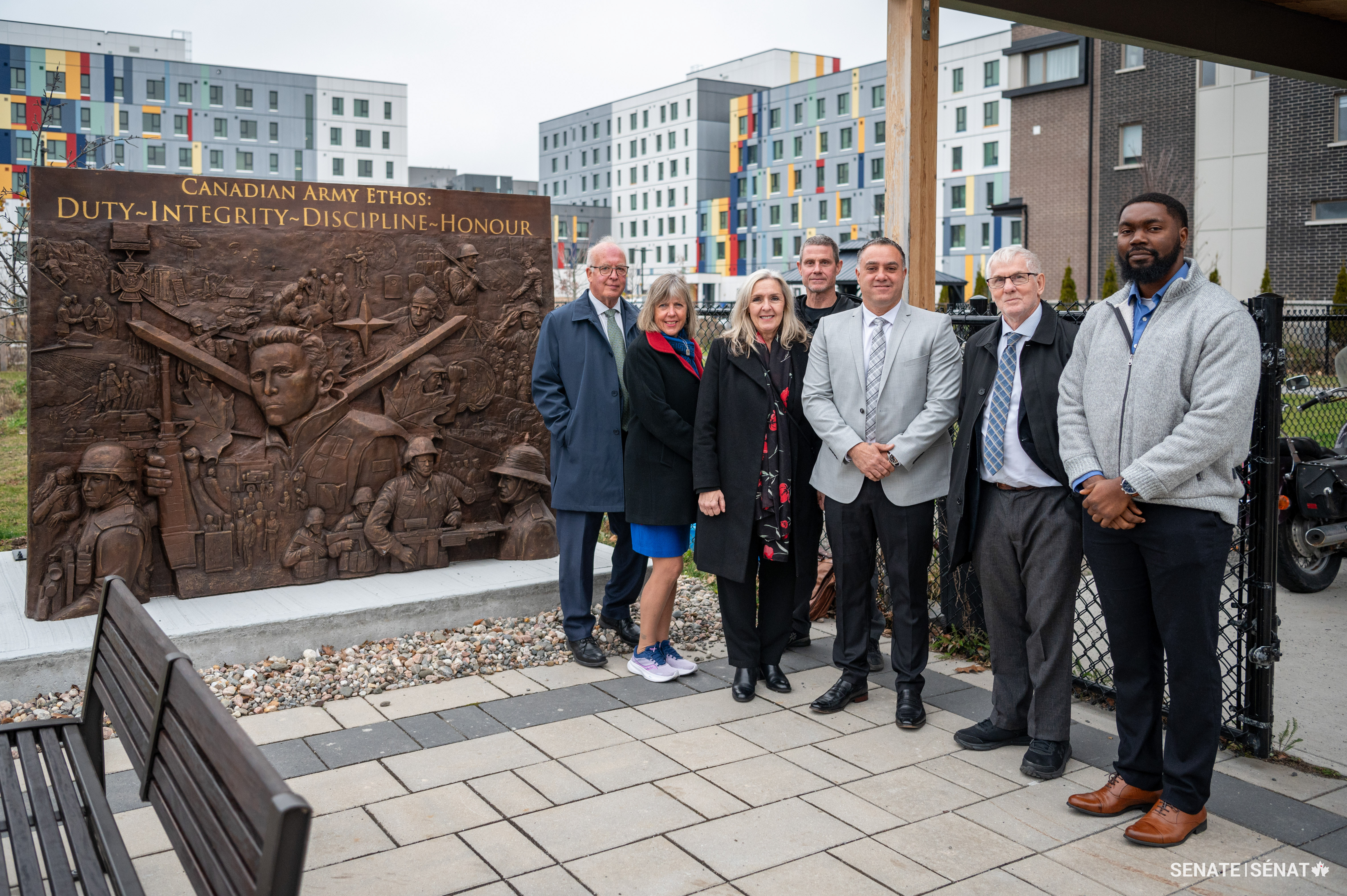Senator Richards, second from right, visits Veterans’ House Canada to meet its staff and learn more about effective approaches to reducing homelessness among veterans as part of the work of the Veterans Affairs subcommittee. Also shown, from left, are senators John M. McNair, Marty Deacon and Rebecca Patterson.