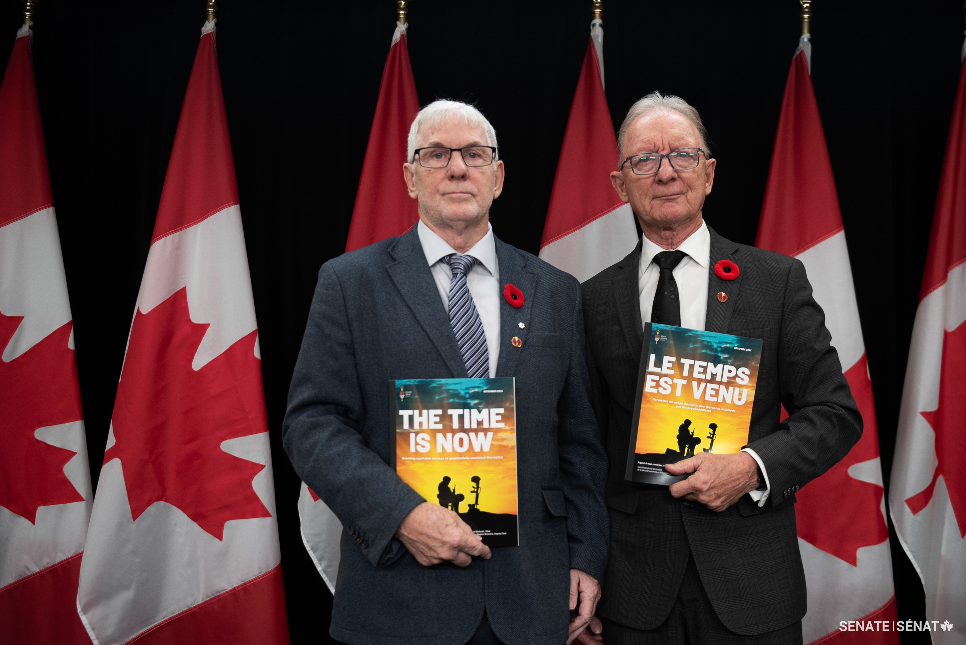 As chair of the Senate’s Subcommittee on Veterans Affairs, Senator Richards worked on the committee’s 2023 report on psychedelic-assisted therapies for veterans with PTSD. He stands with former senator Pierre-Hugues Boisvenu, the committee’s deputy chair at the time.