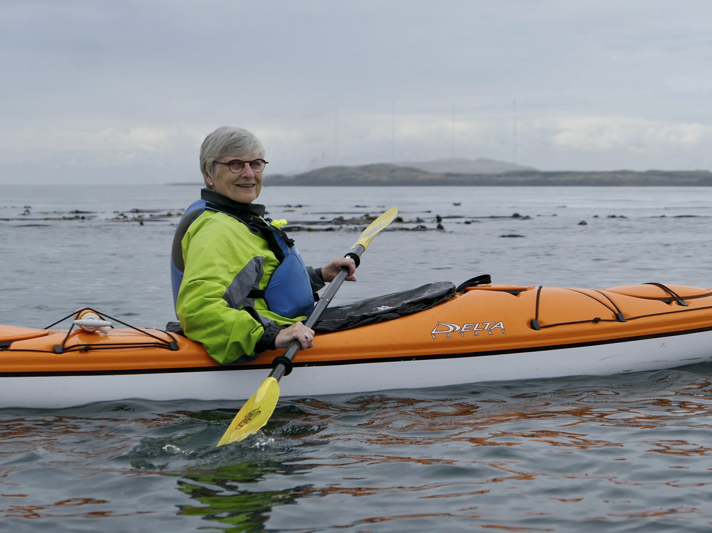 Senator Bovey kayaks in the waters off Victoria, British Columbia in 2018. (Photo credit: Office of Senator Patricia Bovey)