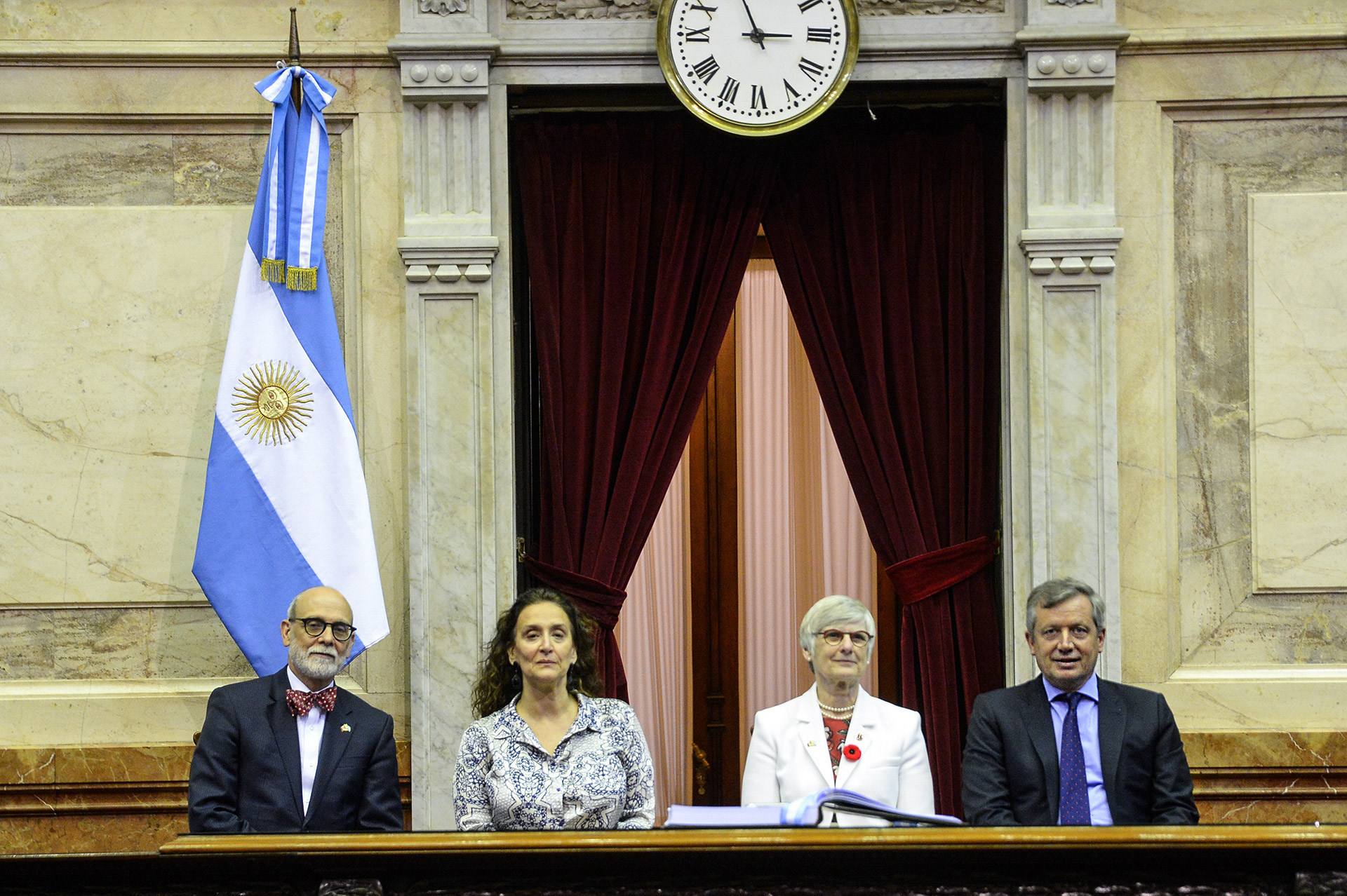 Senator Bovey represents Canada during the Parliamentary Speakers’ Summit at the G20 in Buenos Aires, Argentina, in 2018, where she spoke about women’s empowerment. From left, she is pictured with: David Usher, then Canada’s ambassador to Argentina; Gabriela Michetti, then vice-president of Argentina; and Emilio Monzó, then president of the Argentine Chamber of Deputies. (Photo credit: Office of the Speaker of the Senate)