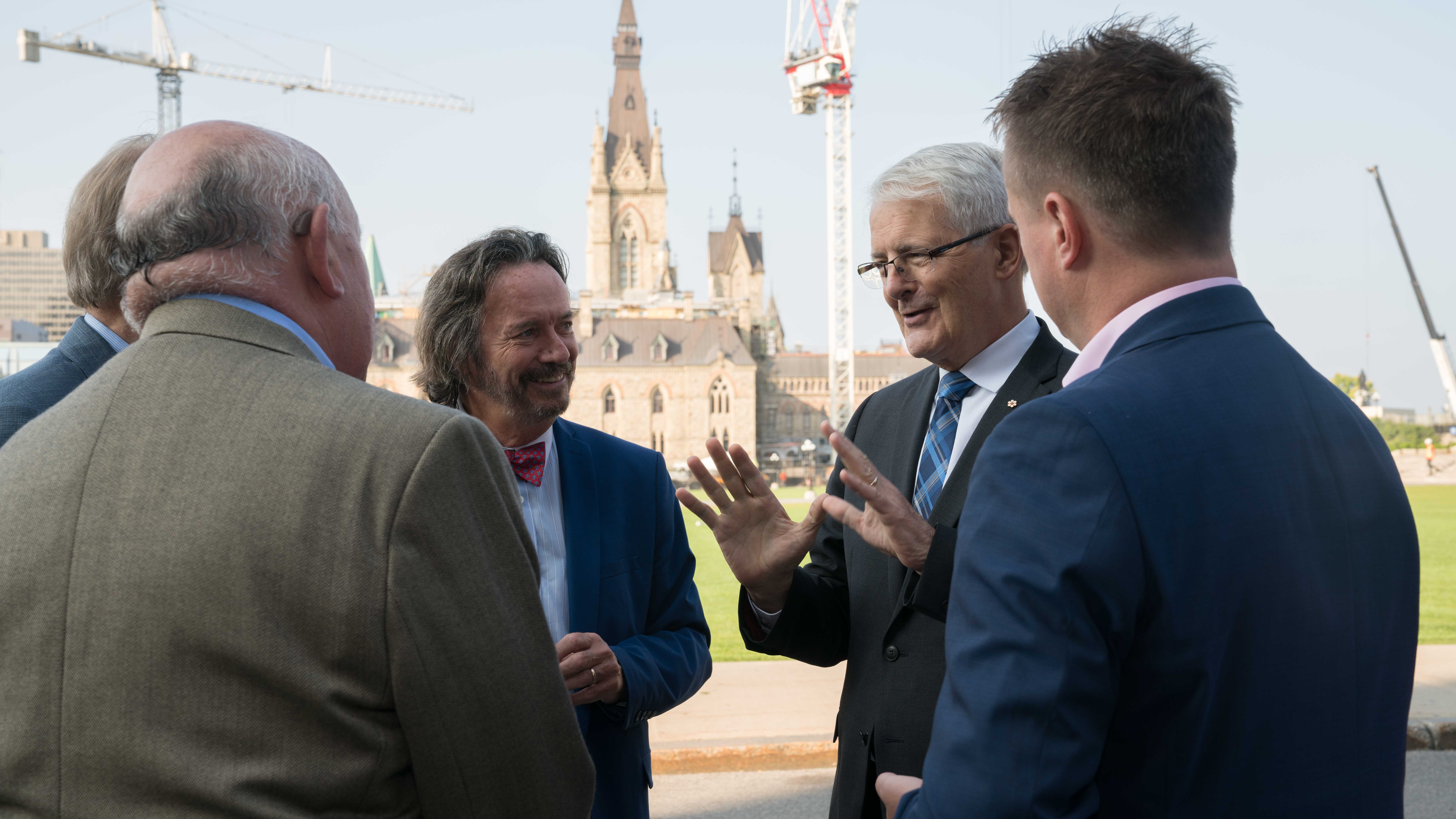 Senator Dawson, then the Deputy Chair of the Transport and Communications Committee, talks with Marc Garneau, then federal Minister of Transport, at an automated vehicle demonstration on Parliament Hill in September 2017.
