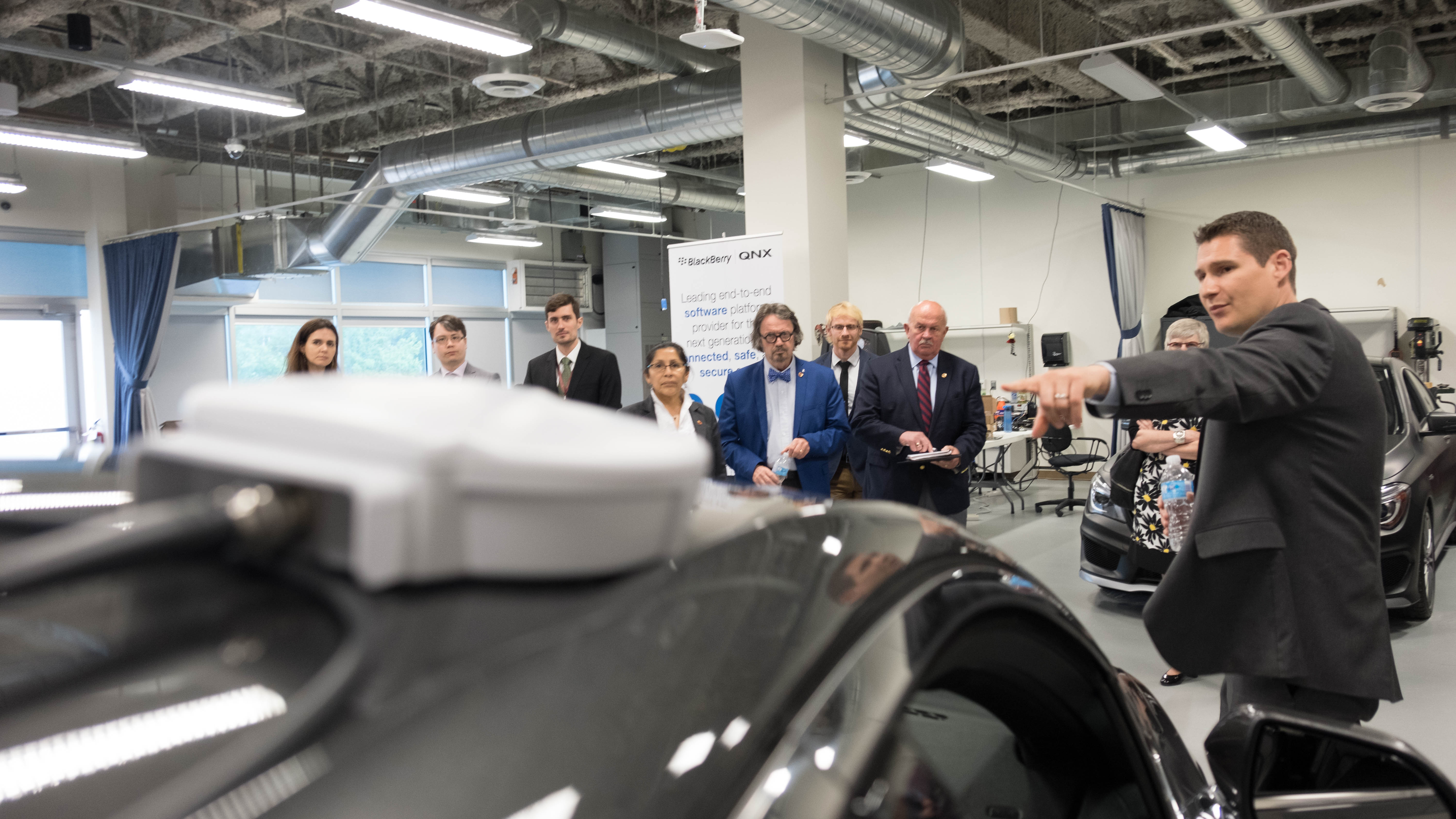 Senator Galvez, fourth from left, Senator Dawson, centre, and former Senator Mercer, third from right, during a fact-finding mission on automated vehicles.