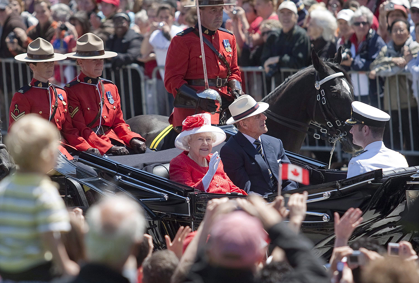 During their 16th visit to Canada in September 1984, the Queen and Prince Philip wave to crowds of supporters as they depart Parliament Hill for Rideau Hall, the official residence of the governor general. (Photo credit: The Canadian Press)