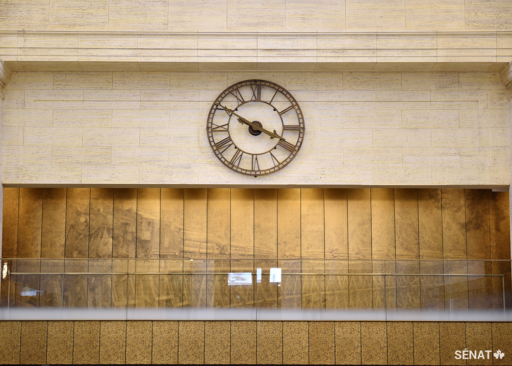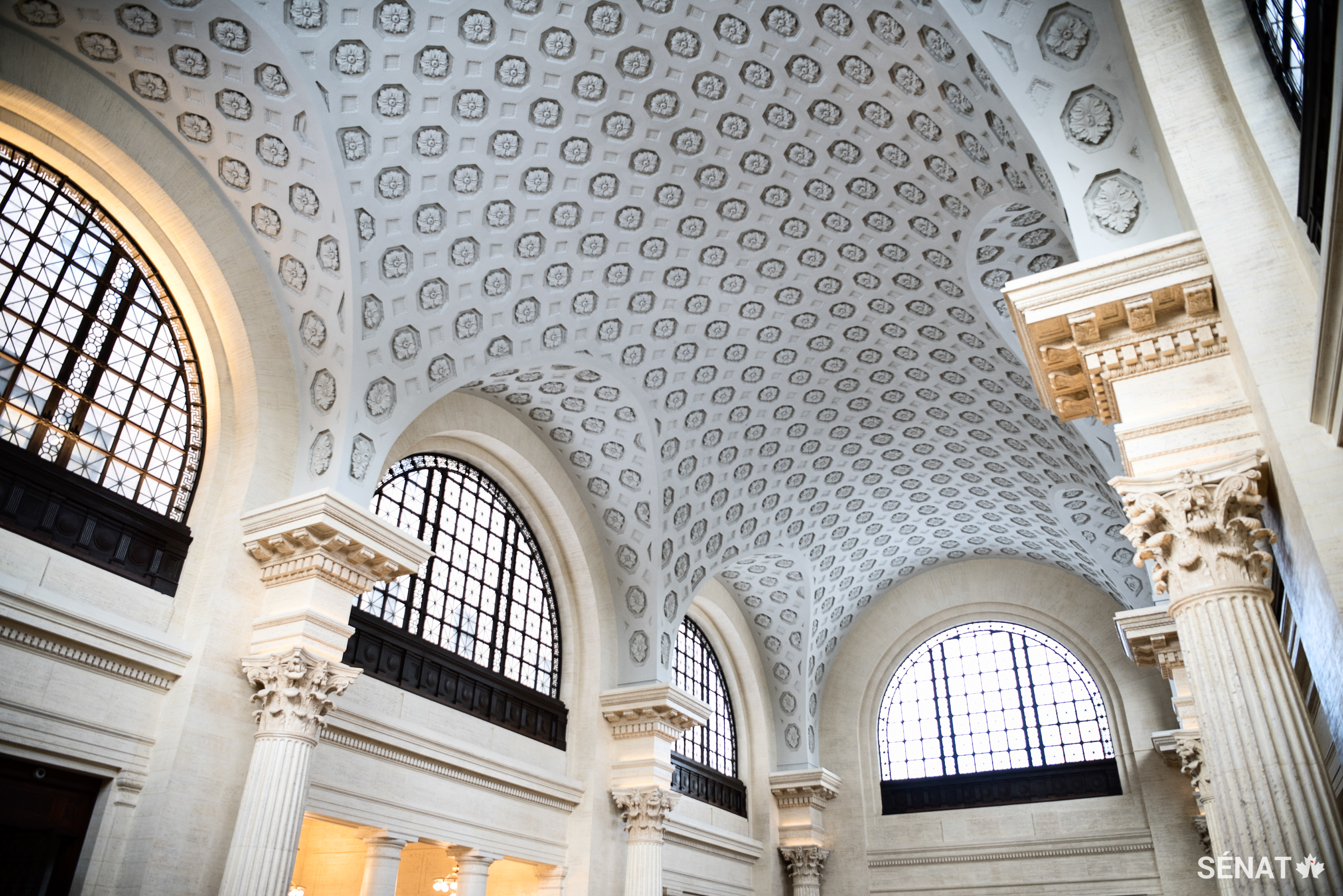 Cet article fait partie d’une série sur le déménagement du Sénat du Canada à son emplacement temporaire dans l’ancien Centre de conférences du gouvernement. Le Sénat a été relocalisé dans l’ancienne gare, construite en 1912, alors que l’édifice du Centre du Parlement — l’emplacement permanent du Sénat — fait l’objet d’importantes rénovations.