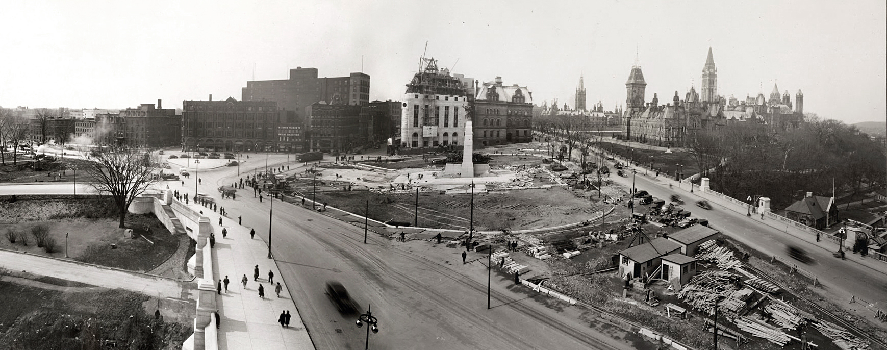 En 1939, ils étaient tous disparus, emportés par les flammes ou démolis pour faire place au nouveau Monument commémoratif de guerre. L’arche de granite de 21 mètres, d’abord conçue pour commémorer les Canadiens qui se sont battus et qui ont perdu la vie pendant la Première Guerre mondiale, représente aujourd’hui le centre solennel de la place de la Confédération.