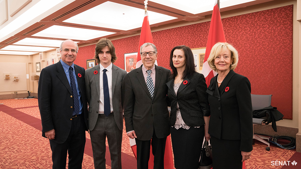 La sénatrice Raynell Andreychuk et les sénateurs Marc Gold et Percy E. Downe se sont réunis avec la famille du regretté Sergei Magnitsky et avec le champion des droits de la personne, Irwin Cotler, et l’auteur Bill Browder pour souligner l’adoption de la Loi Magnitsky qui facilitera l’imposition de sanctions à ceux qui violent les droits de la personne au sein des gouvernements étrangers.