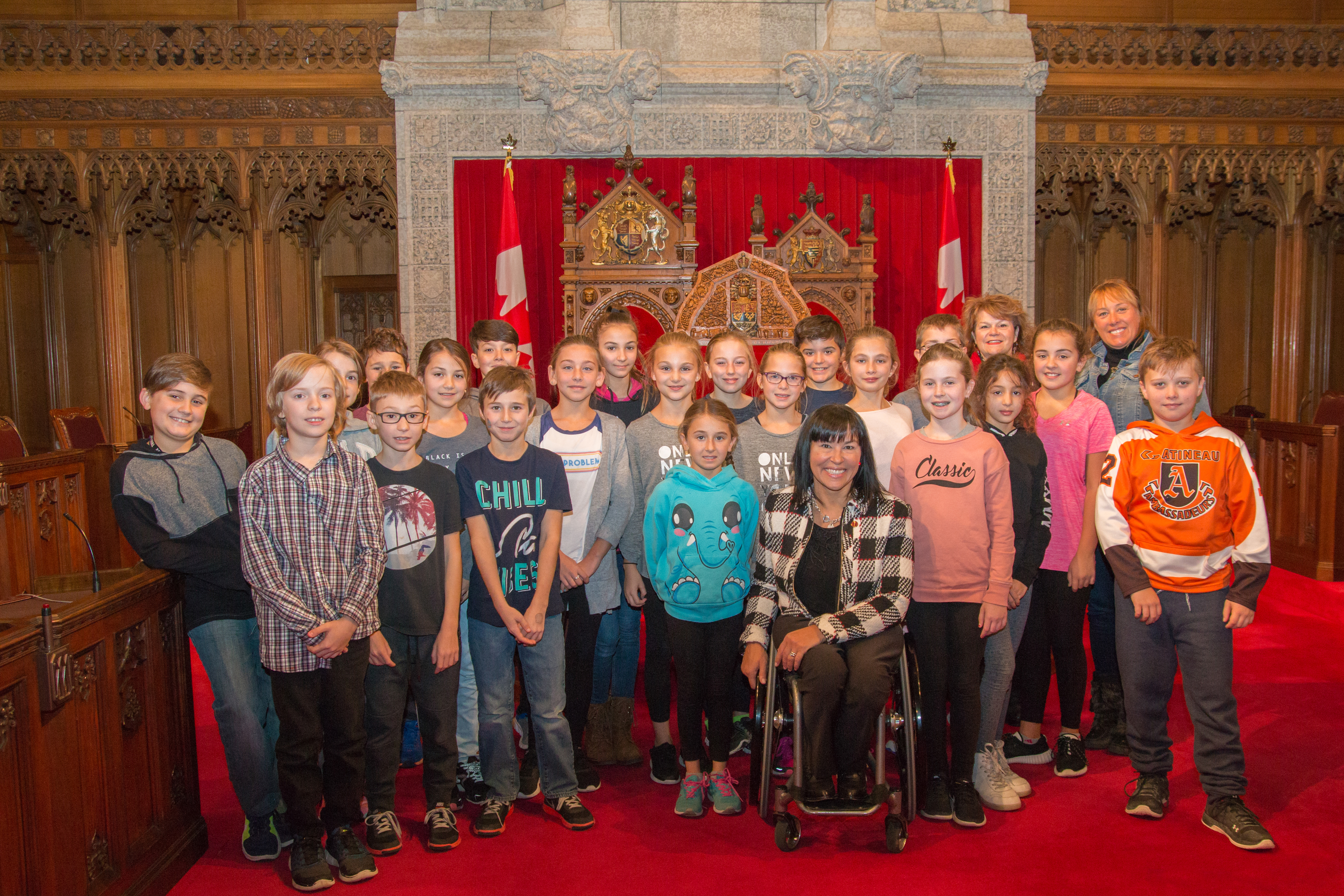 Le mercredi 22 novembre - La sénatrice Chantal Petitclerc invite au Sénat des élèves de 10 et 11 ans de l'École des cépages de Gatineau afin de discuter du rôle de la Chambre rouge et des enjeux sur lesquels elle travaille en tant que sénatrice. L'événement faisait partie du programme S’ENgage.