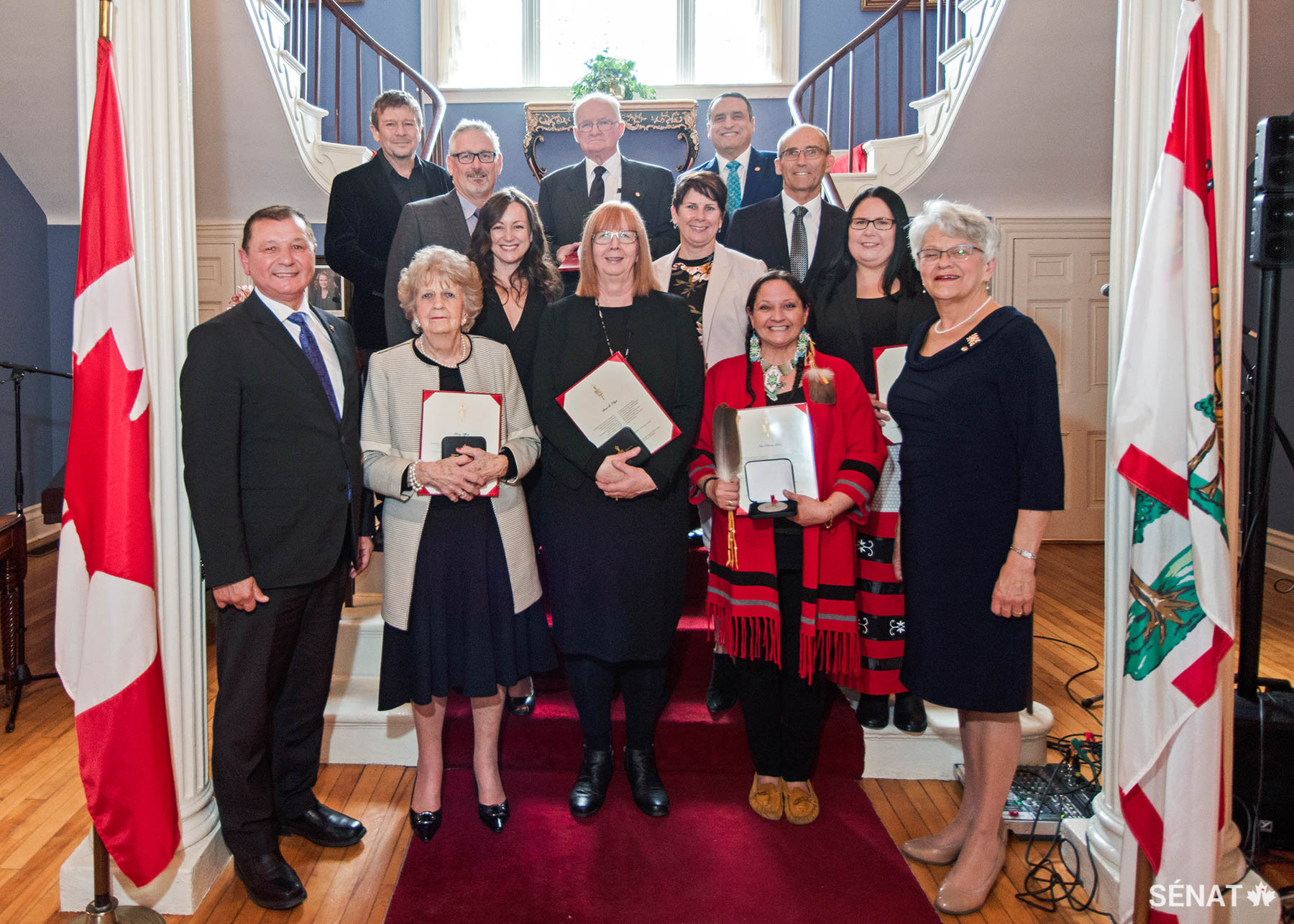 Le vendredi 26 avril 2019 – Le sénateur Brian Francis assiste à une cérémonie au cours de laquelle il a présenté des médailles du 150e anniversaire du Sénat à la Maison du Gouvernement à Charlottetown. La cérémonie a eu lieu en présence de Son Honneur Antoinette Perry, lieutenante-gouverneure de l’Île-du‑Prince‑Édouard. Des musiciens de l’endroit ainsi que des danseurs et des tambours autochtones ont donné un spectacle en l’honneur des récipiendaires, de leurs amis et de leur famille.
