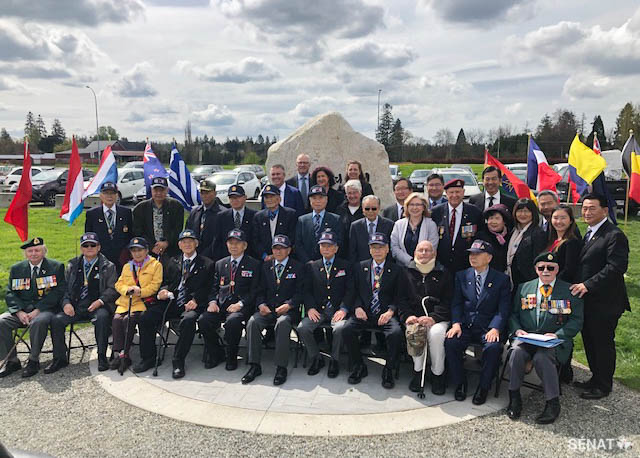 Le mardi 16 avril 2019 – La sénatrice Yonah Martin se joint à des vétérans de la guerre de Corée, au Consul général Byung-won Chung et aux membres de la communauté coréenne locale au Canada pour commémorer le 68e anniversaire de la bataille de Kapyong qui s’est déroulée à l’arboretum Doubleday dans le cadre d’une cérémonie spéciale de lever des couleurs à Langley (Colombie‑Britannique).