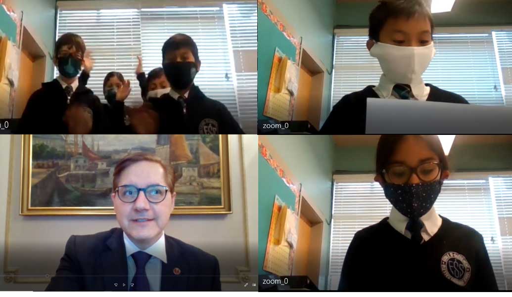 Le lundi 26 octobre 2020 – Le sénateur Tony Loffreda participe à un événement avec des élèves de l’École Saint-Sacrement de Vancouver, en Colombie-Britannique, dans le cadre d’une série sur les Canadiens exceptionnels organisée par Jeunes Citoyens du Monde.