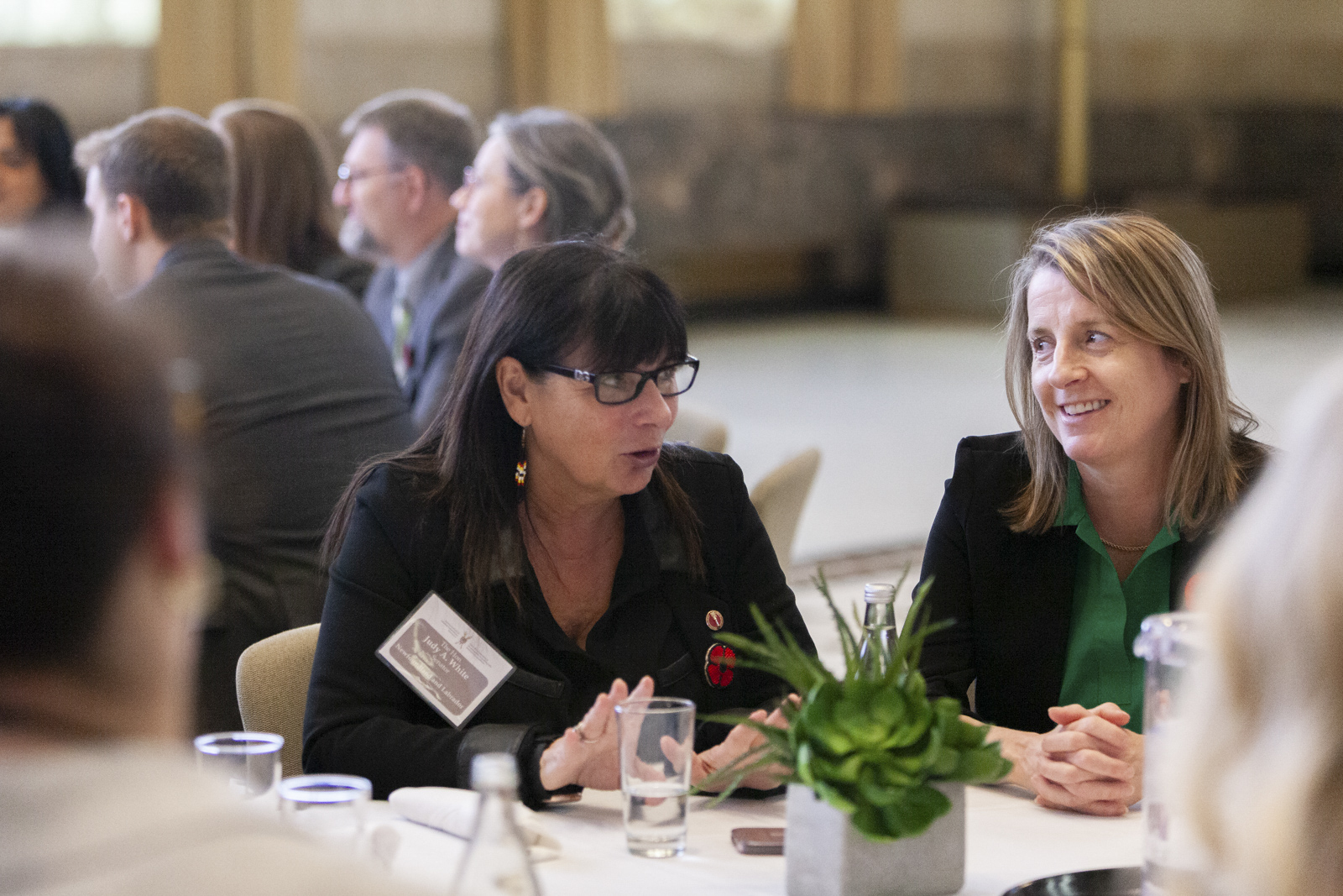Le jeudi 2 novembre 2023 – La sénatrice Judy A. White, à gauche; diner avec les enseignants qui participent au Forum des enseignants, coordonné par la Bibliothèque du Parlement et S’ENgage; édifice Sir‑John‑A.‑MacDonald, Ottawa, Ontario. Crédit photo : J. Harrington/Icon Imaging