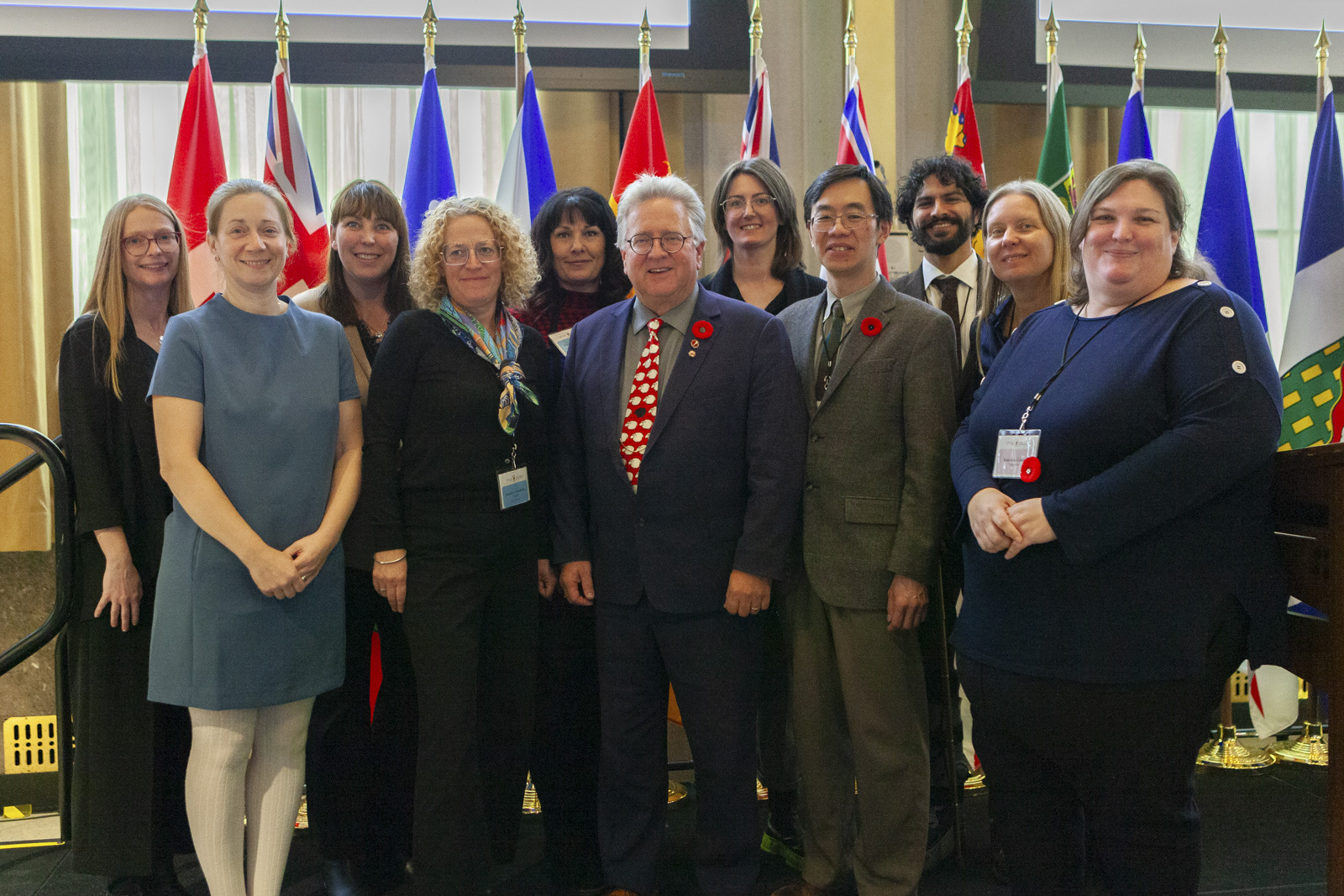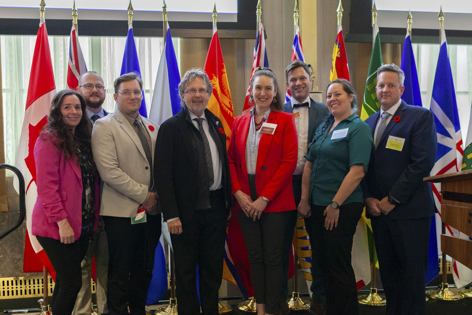 Le jeudi 2 novembre 2023 – Le sénateur Stan Kutcher, quatrième à partir de la gauche; diner avec les enseignants qui participent au Forum des enseignants, coordonné par la Bibliothèque du Parlement et S’ENgage; édifice Sir‑John‑A.‑MacDonald, Ottawa, Ontario. Crédit photo : J. Harrington/Icon Imaging