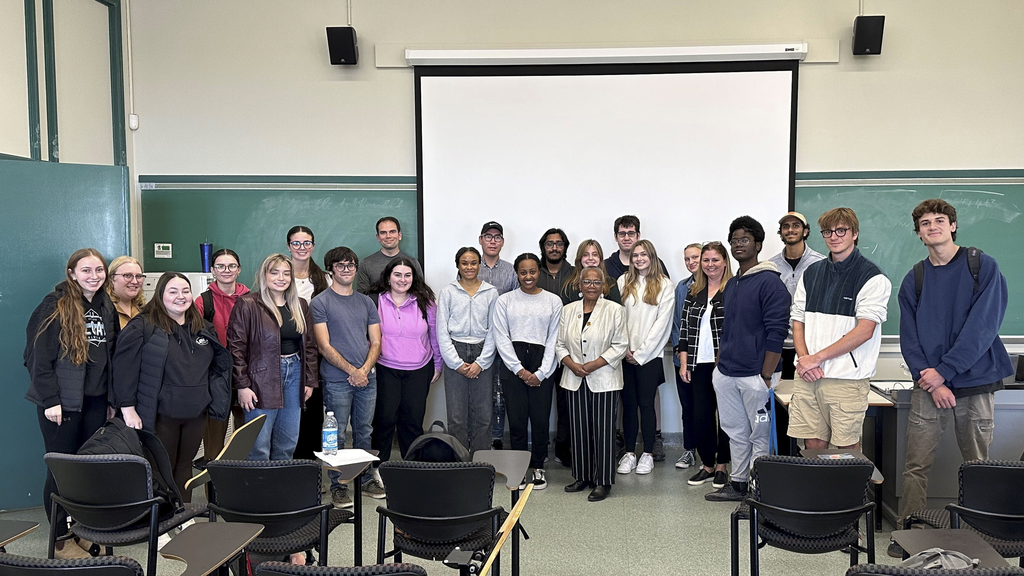 Le mardi 10 octobre 2023 – La sénatrice Wanda Thomas Bernard, première rangée au centre; conférence organisée par S’ENgage pour les étudiants du cours sur les structures du gouvernement parlementaire canadien; Université Dalhousie, Halifax, Nouvelle-Écosse.