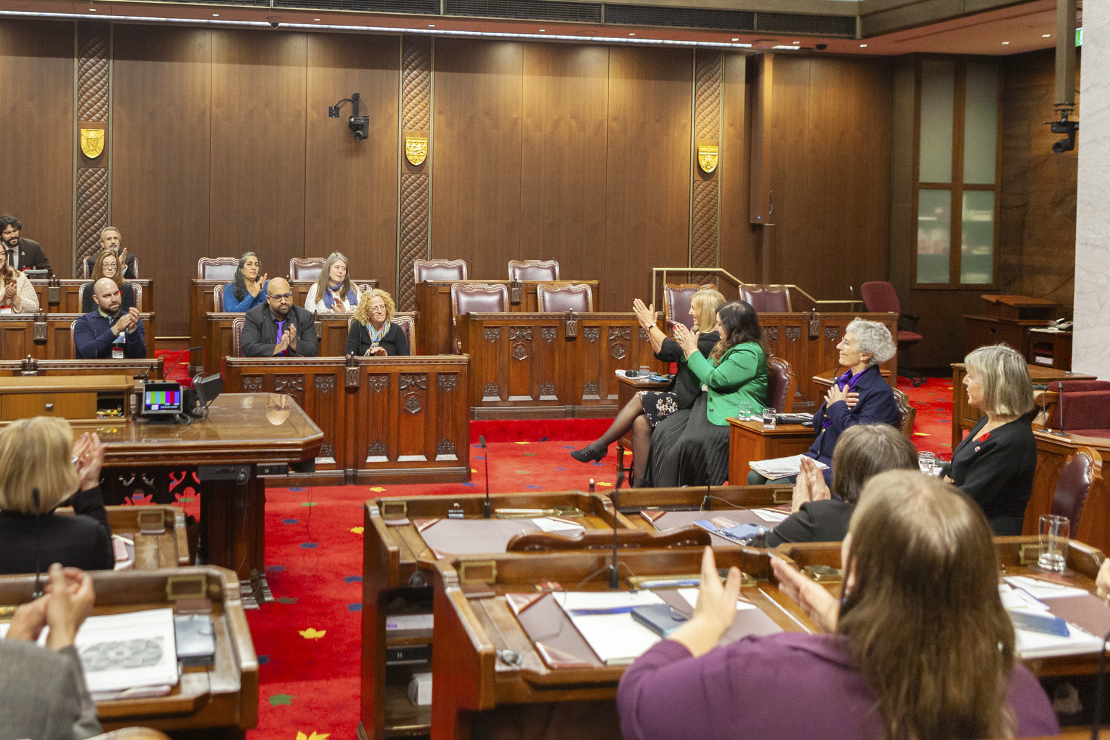 Le jeudi 2 novembre 2023 – Les sénatrices Patti LaBoucane-Benson, Salma Ataullahjan, Renée Dupuis et Marty Deacon; panel sur les perspectives des sénateurs dans le cadre du Forum des enseignants, coordonné par la Bibliothèque du Parlement et S’ENgage; Chambre du Sénat, Ottawa, Ontario. Crédit photo : J. Harrington/Icon Imaging