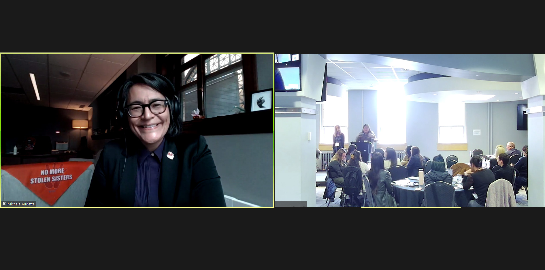 Le mercredi 1er novembre 2023 – La sénatrice Michèle Audette; conférencière invitée à la conférence Journées de recherche sur la violence sexuelle de l’Université de Moncton, au Nouveau-Brunswick, coordonnée par S’ENgage.