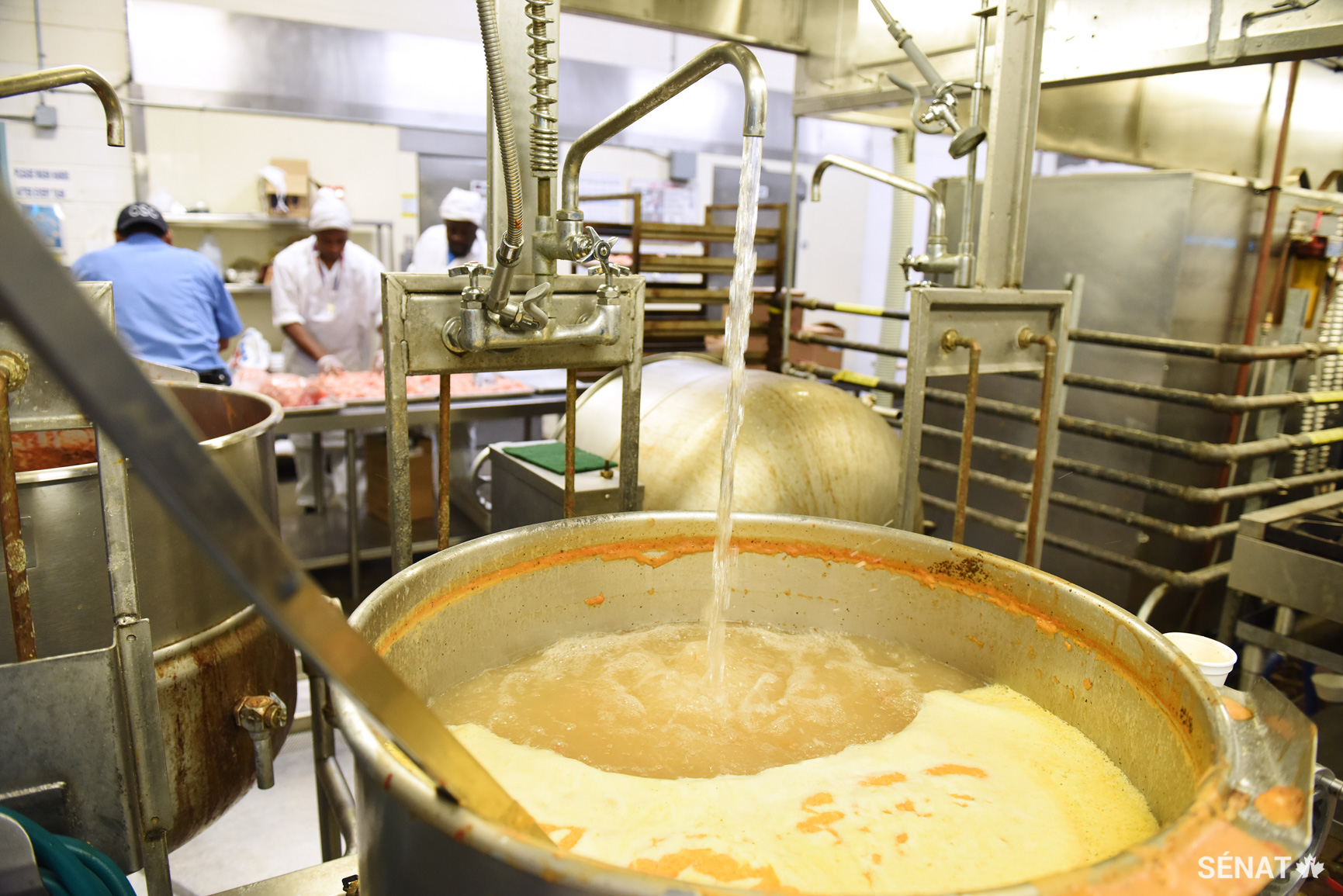 Un robinet coule dans un gros chaudron de soupe. Un prisonnier a affirmé qu’un des cuisiniers avait l’habitude de se laver les mains sous le robinet pendant qu’il coulait dans la soupe.