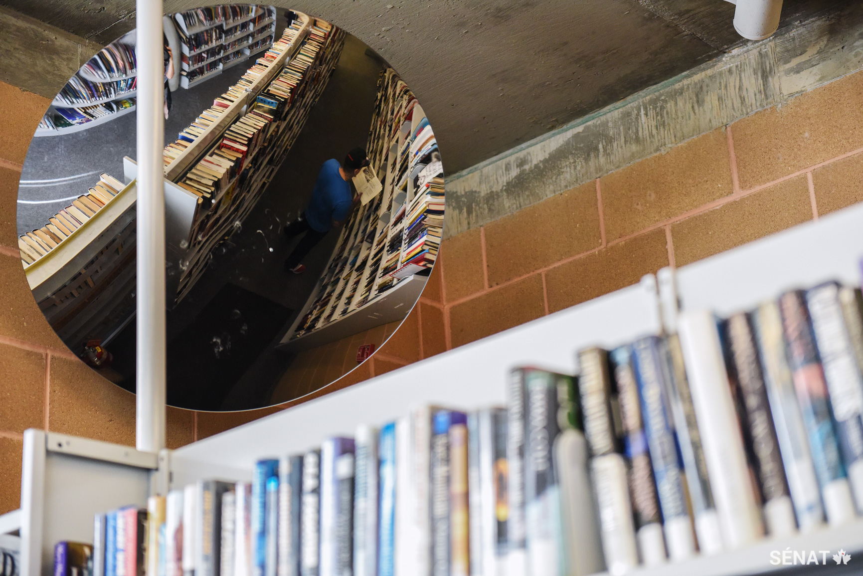 Un prisonnier parcourt un livre dans la bibliothèque de Stony Mountain.