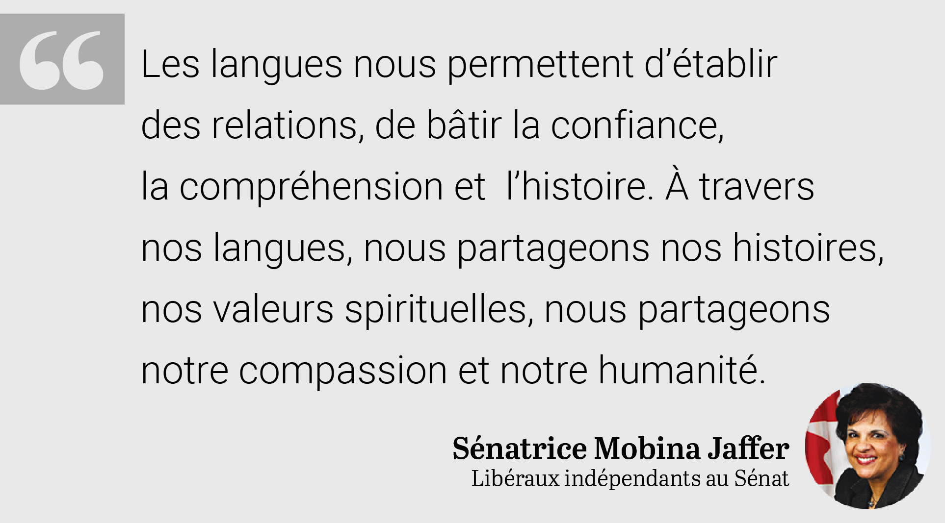 Il existe un besoin grandissant d’embrasser la pluralité linguistique. L’identité canadienne repose sur une mosaïque de langues et de cultures qui se combinent pour former une communauté multiculturelle dynamique et sans pareille.