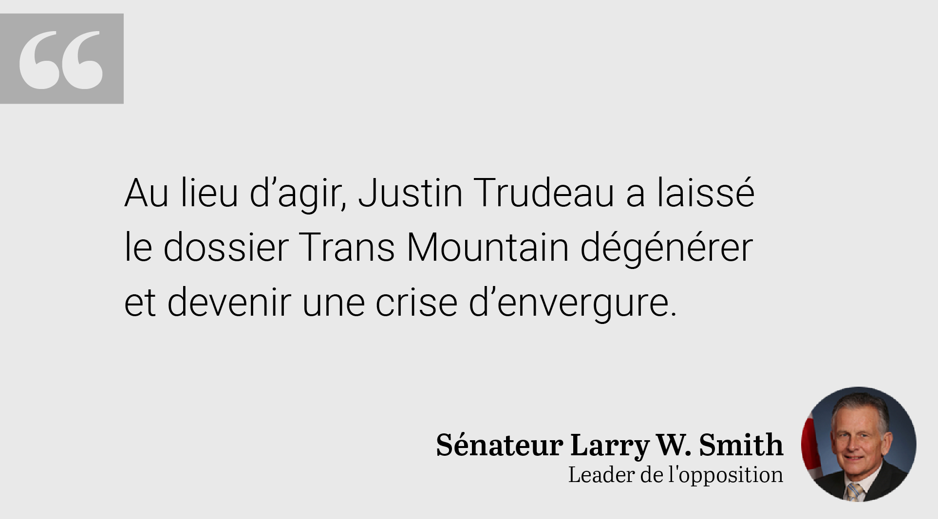 Au lieu d’agir, Justin Trudeau a laissé le dossier Trans Mountain dégénérer et devenir une crise d’envergure. Le gouvernement a placé la barre plus haute dans ce contexte en annulant d’autres grands projets de construction de pipeline qui avaient été proposés. Il a opposé son véto au projet d’oléoduc Northern Gateway, déjà approuvé, et annulé le projet Énergie Est en modifiant les règles à la dernière minute et en adoptant une norme réglementaire qui ne s’applique à aucun autre secteur de l’économie canadienne. La taxe sur les émissions de carbone et les nouvelles exigences réglementaires énoncées dans le projet de loi C-69 ont fait fuir des investissements de milliards de dollars.
