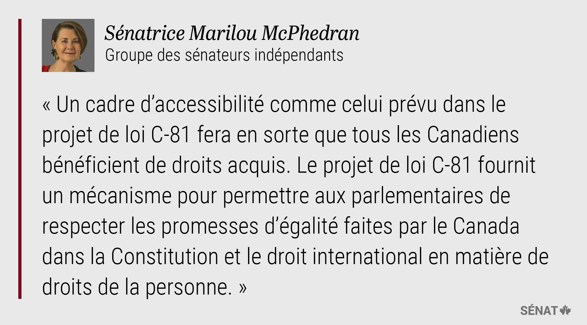 Un cadre d’accessibilité comme celui prévu dans le projet de loi C-81 fera en sorte que tous les Canadiens bénéficient de droits acquis.