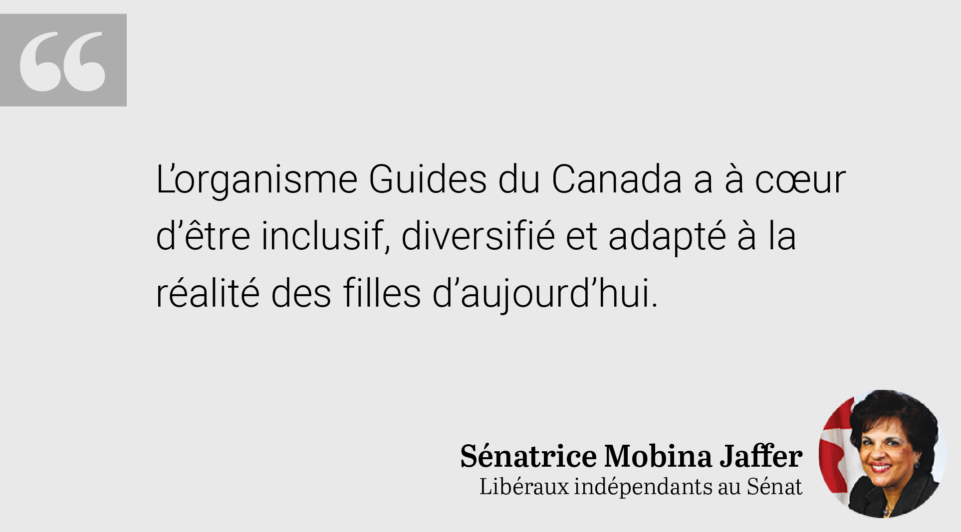 L’organisme Guides du Canada a à cœur d’être inclusif, diversifié et adapté à la réalité des filles d’aujourd’hui. C’est ce qui devrait figurer dans sa charte. Ces valeurs sont essentielles et correspondent à son objectif : offrir un espace sécuritaire où les filles de tous les milieux peuvent s’épanouir tout en développant leur assurance, leur résilience, leur indépendance et leur ouverture d’esprit.