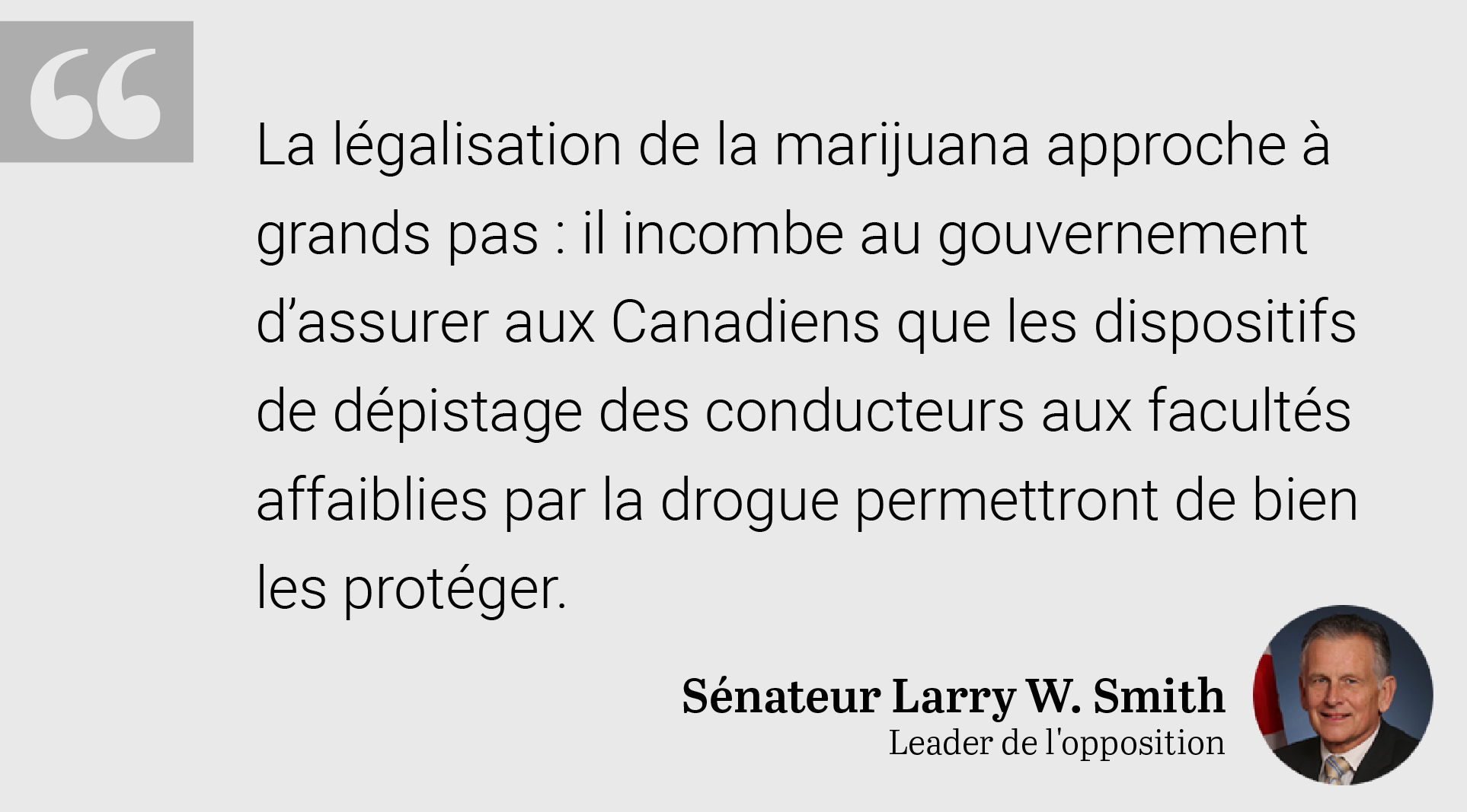 La légalisation de la marijuana approche à grands pas : il incombe au gouvernement d’assurer aux Canadiens que les dispositifs de dépistage des conducteurs aux facultés affaiblies par la drogue permettront de bien les protéger.