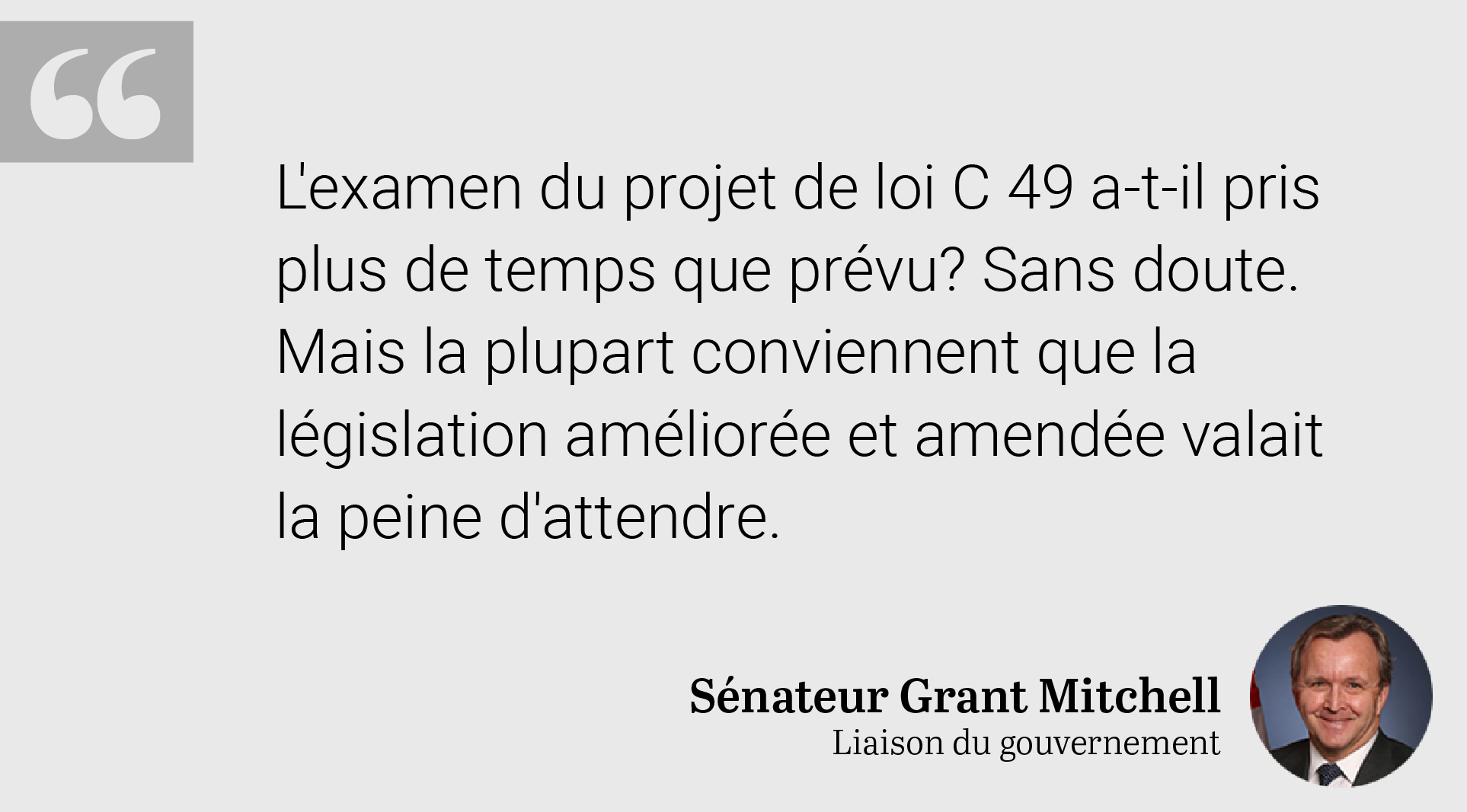 L'examen du projet de loi C‑49 a-t-il pris plus de temps que prévu? Sans doute. Mais la plupart conviennent que la législation améliorée et amendée valait la peine d'attendre.