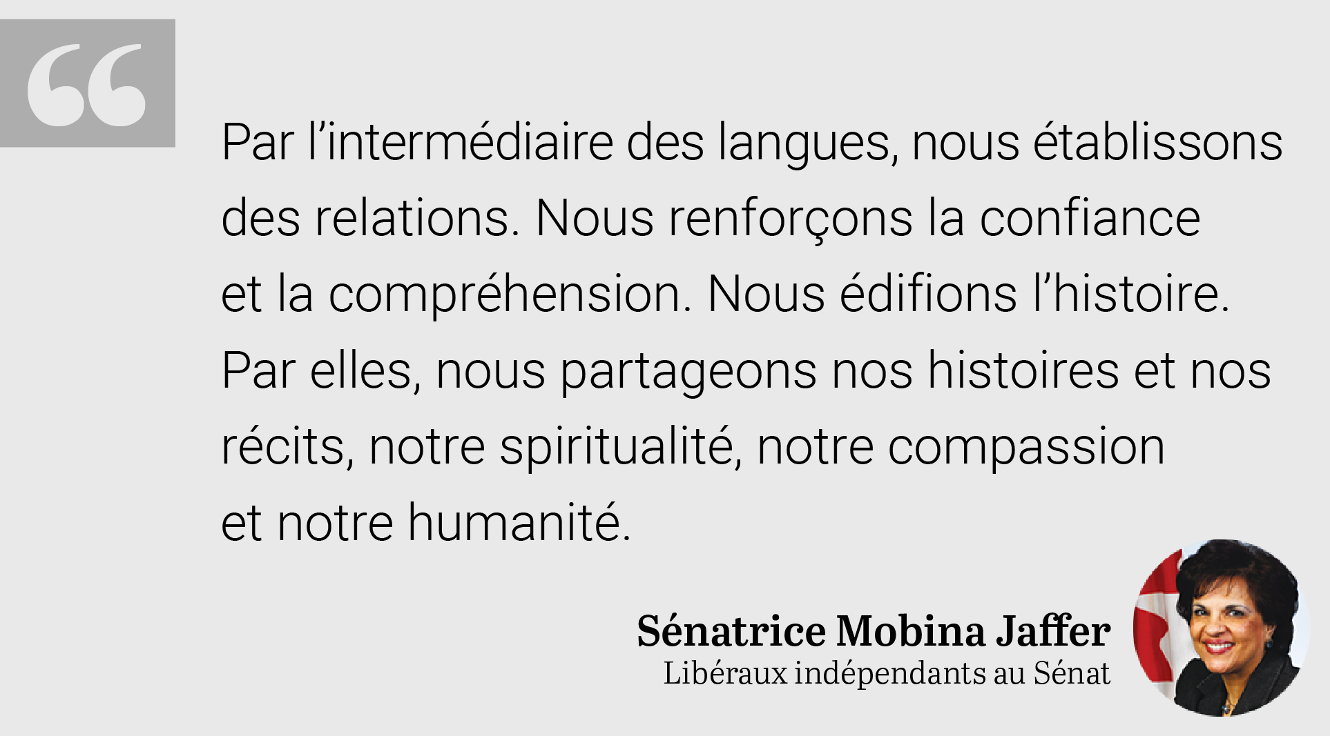 La semaine dernière au Sénat : désignation du 21 février comme Journée internationale de la langue maternelle; Loi sur le moratoire relatif aux pétroliers; réaffirmation de l’importance des langues officielles du Canada.